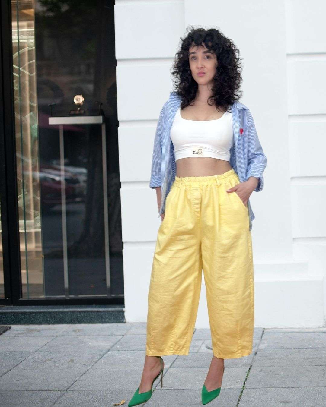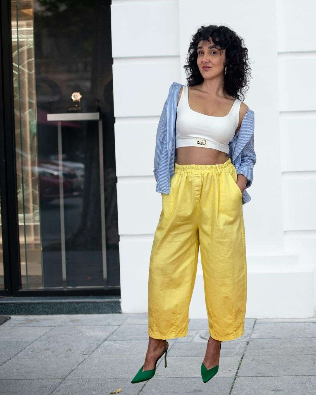 Κίτρινο barrel jean σε μοντέρνα γραμμή που ξεχωρίζει για το καμπυλωτό, φαρδύ του σχήμα και τον statement χαρακτήρα του.
