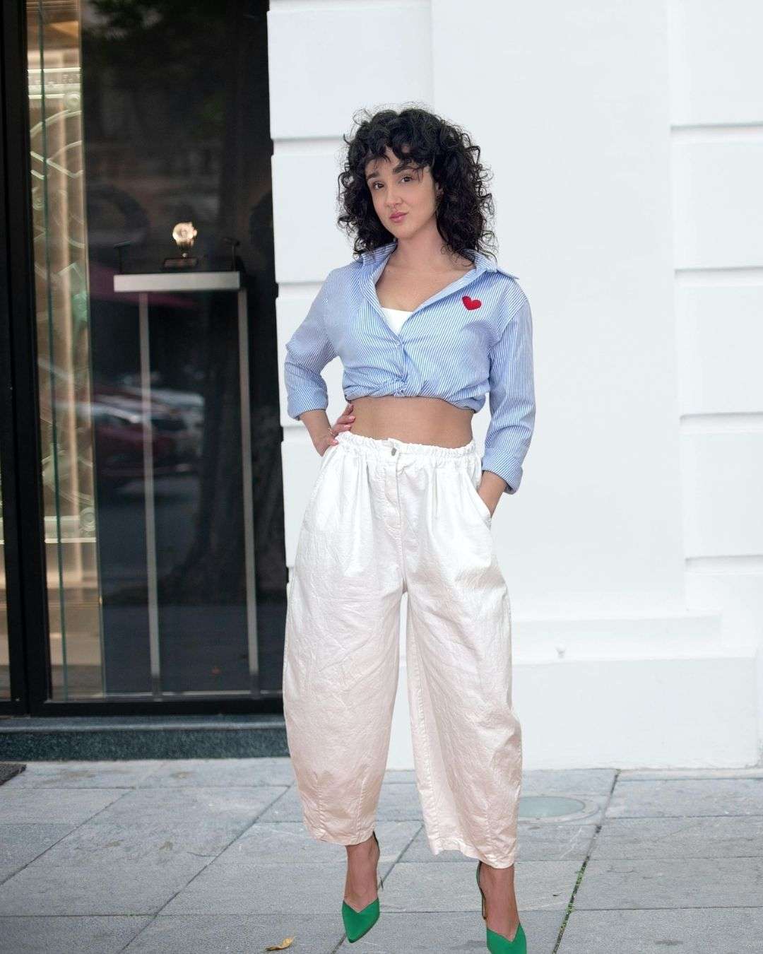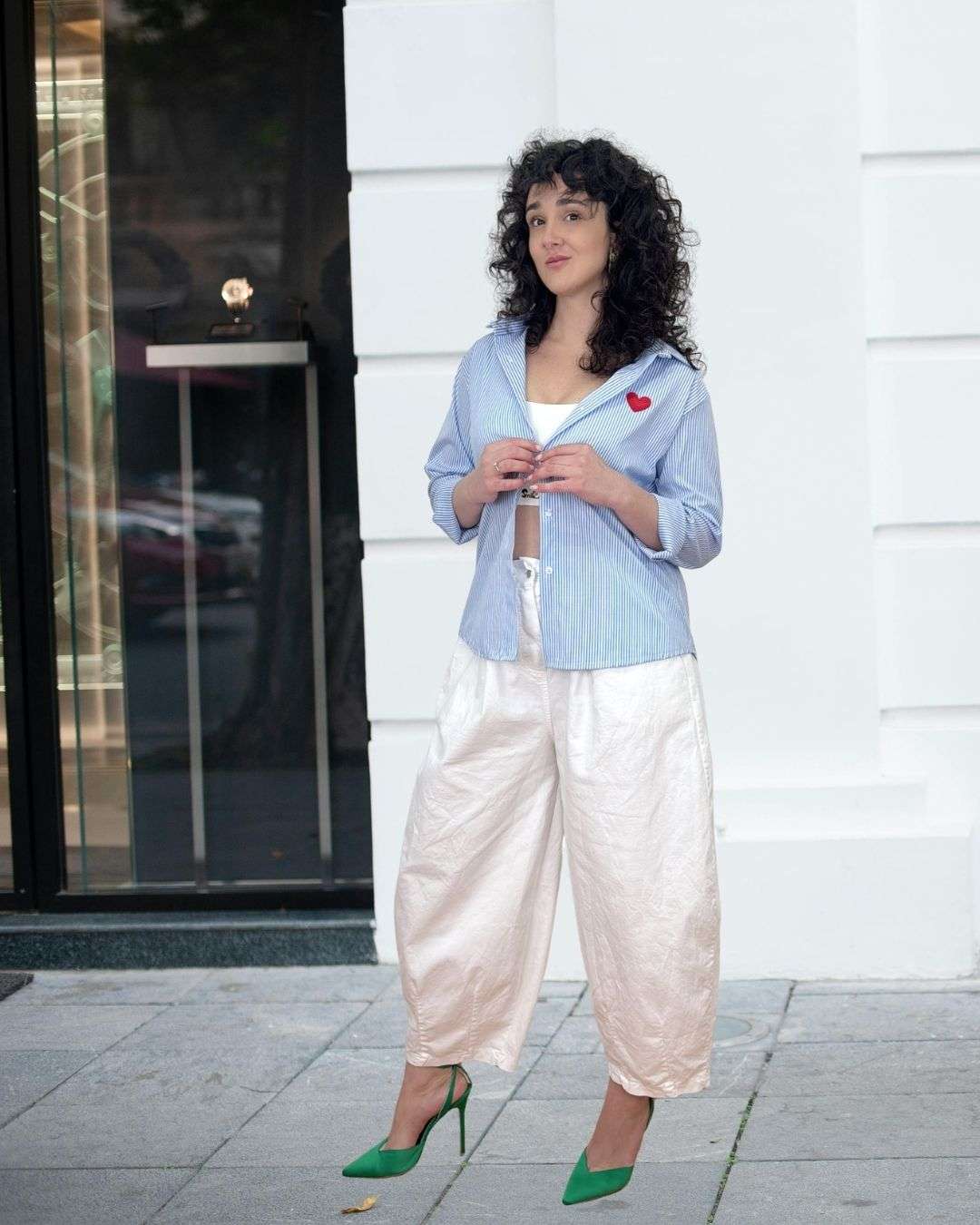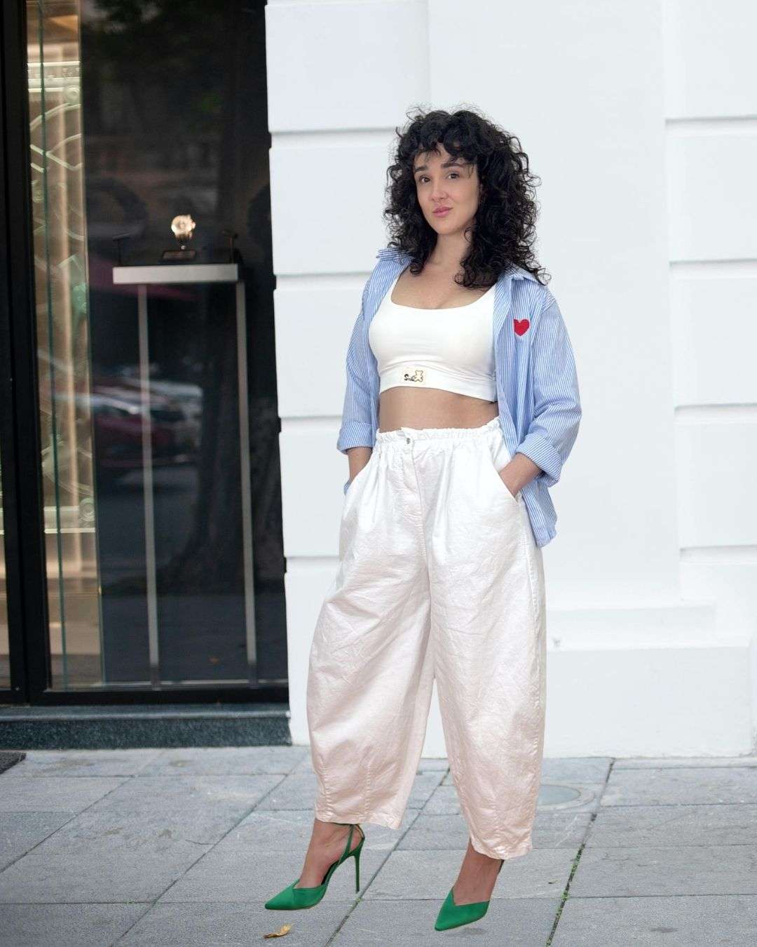 Λευκό barrel jean σε μοντέρνα γραμμή που ξεχωρίζει για το καμπυλωτό, φαρδύ του σχήμα και τον statement χαρακτήρα του.