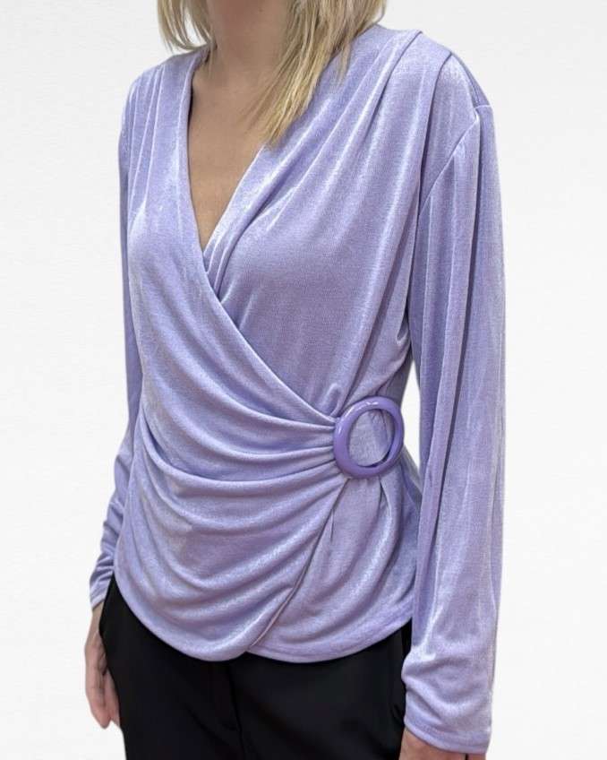 Μπλούζα ντραπέ κρουαζέ Λιλά- style PL 250215 Onesize ( S-L)