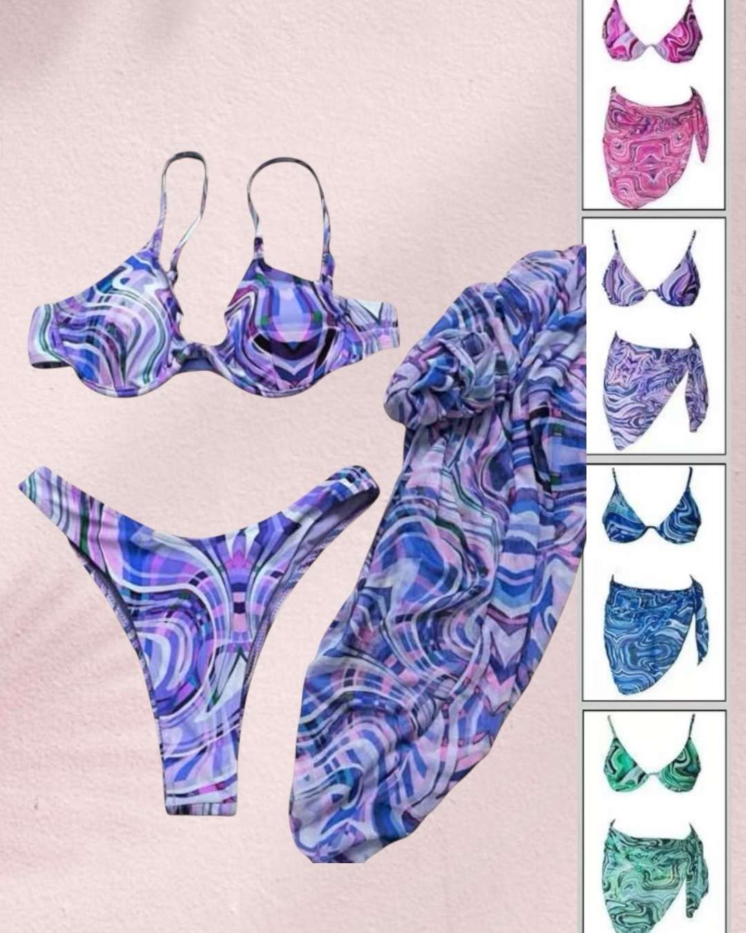 Εμπριμέ Bikini Set με Παρεό Ανανέωσε το beachwear σου με αυτό το κομψό και πρακτικό σετ μπικίνι με παρεό, που συνδυάζει στιλ, άνεση και στήριξη!