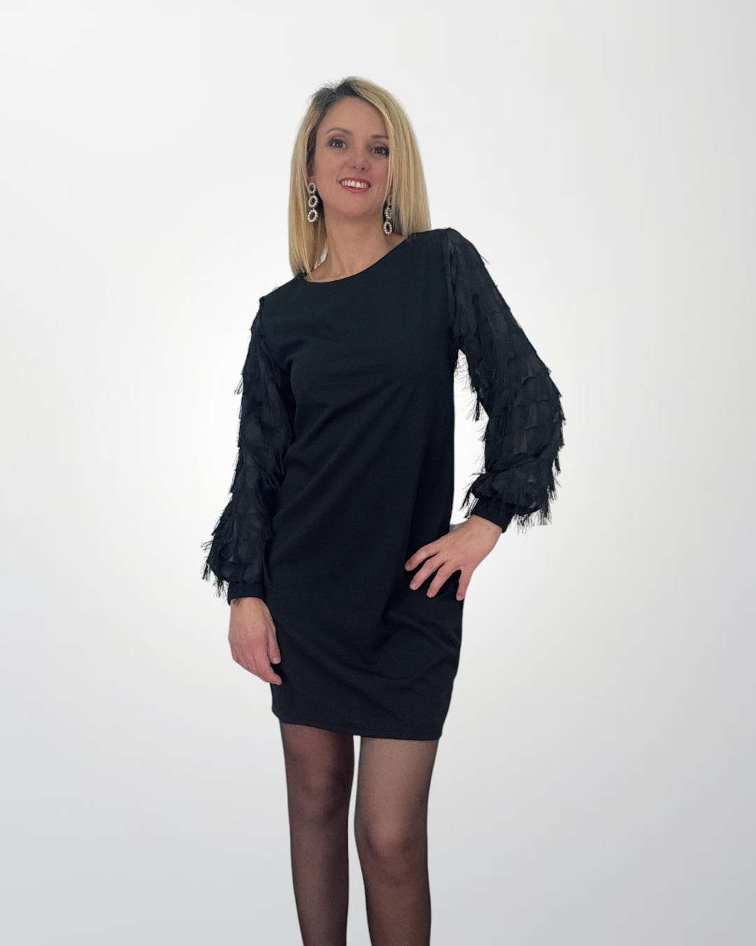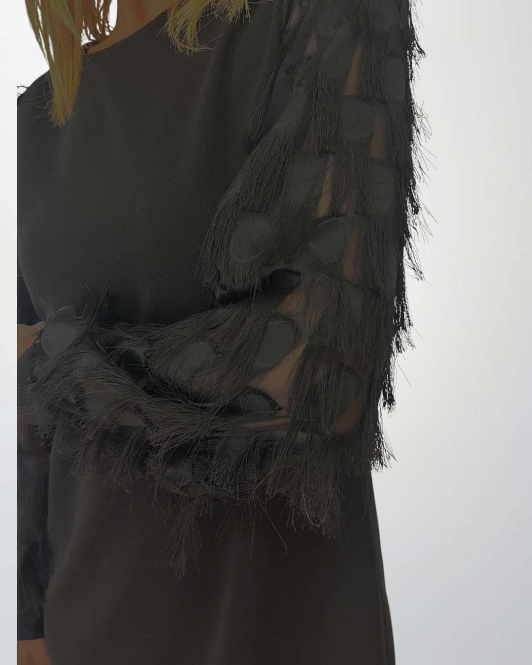 Γυναικεία μαύρο φόρεμα με Διαφάνεια & Κρόσσια στα μανίκια
