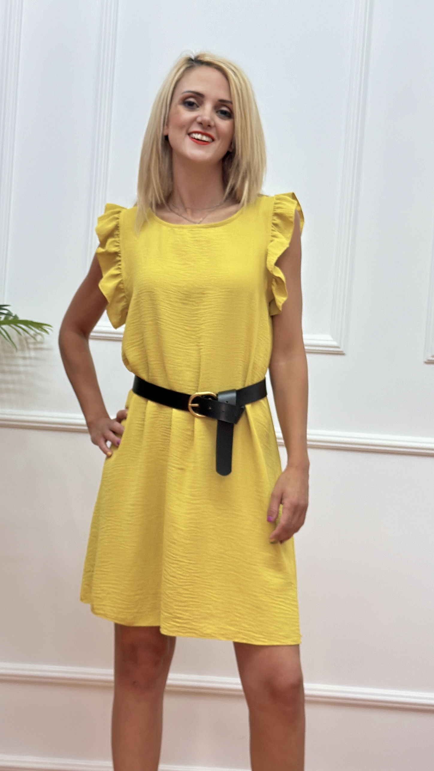 Φόρεμα με ζωνάκι και φραμπαλά Ώχρας