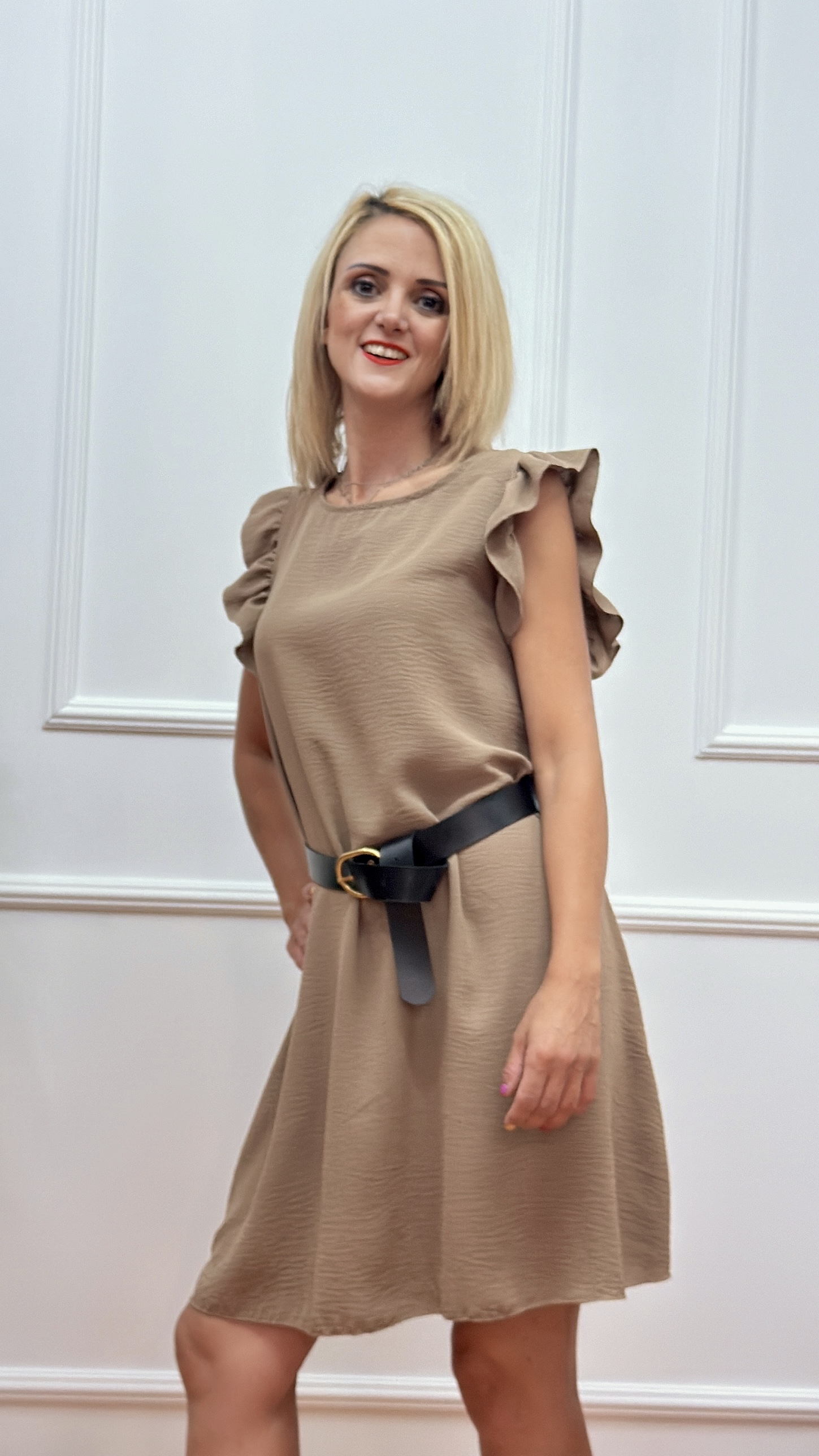 Φόρεμα με ζωνάκι και φραμπαλά Σοκολά (Brown)