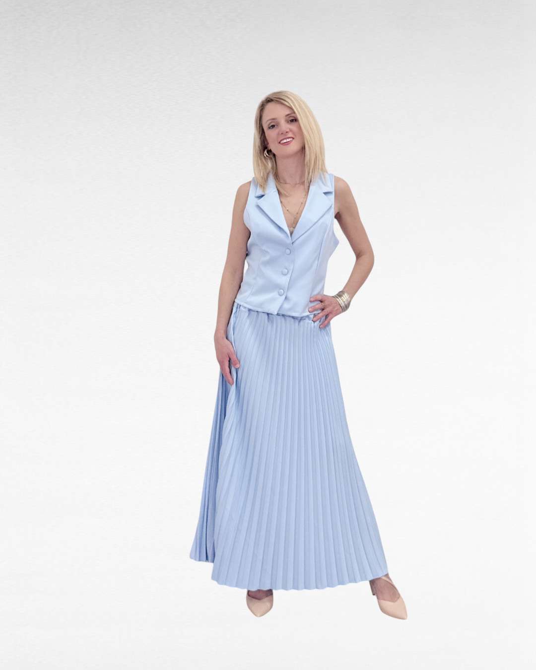 Γυναικείο σετ με γιλέκο & πλισέ μάξι φούστα. Κομψό, αέρινο & ιδανικό για chic εμφανίσεις!