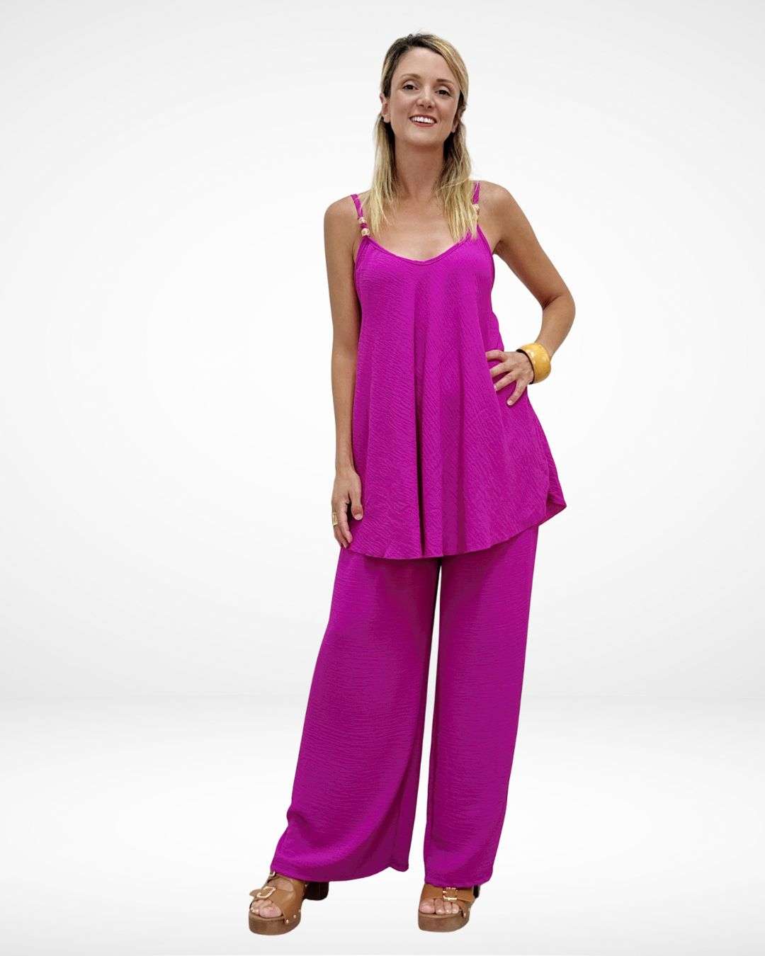 Καλοκαιρινό Σετ – Παντελόνα & Τοπ με Ξύλινες Χάντρες D.Red