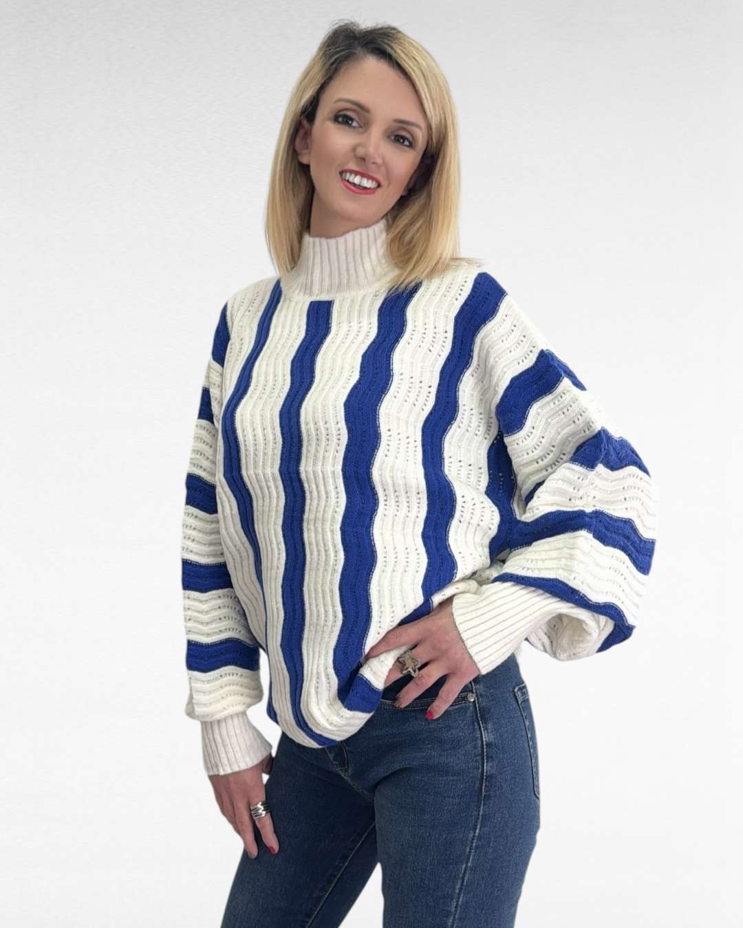 Το λευκό πουλόβερ με μπλε ρίγες είναι εδώ για να δώσει νέο αέρα στο στιλ σου! 🤍💙