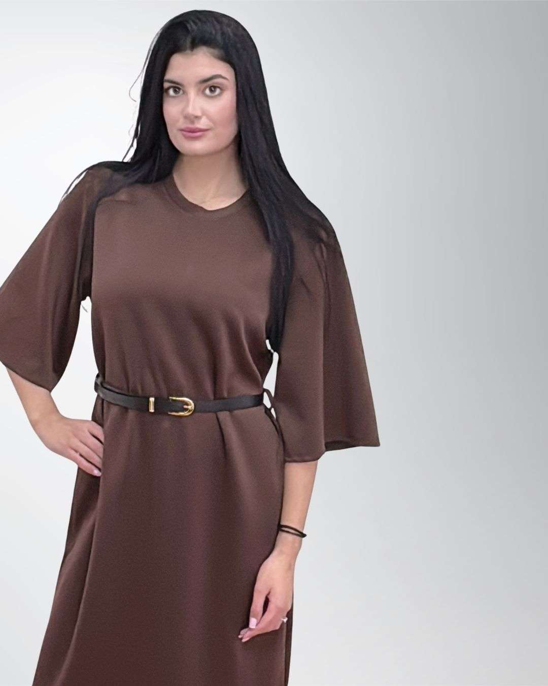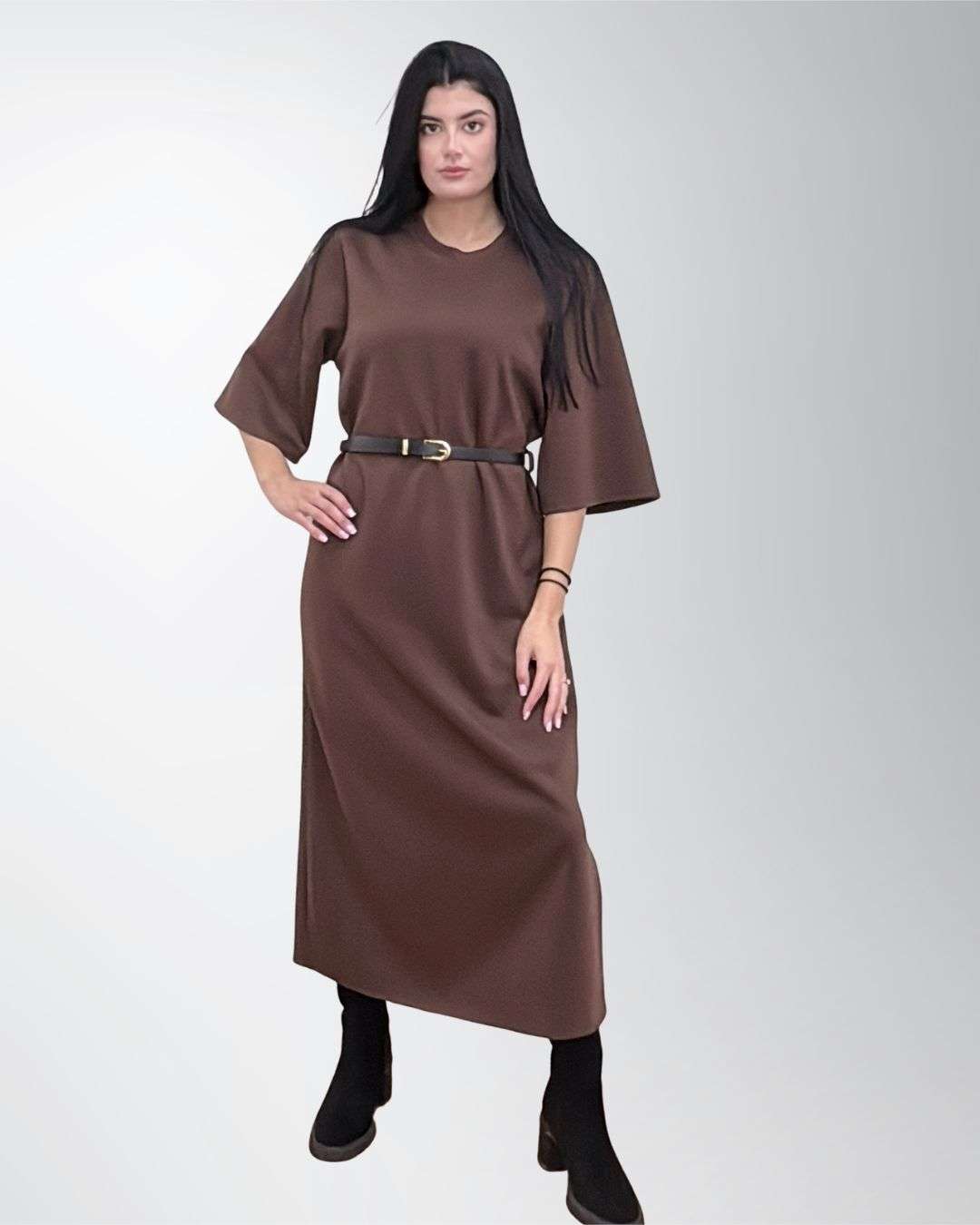 Μακρύ Μονόχρωμο Φόρεμα Α-Γραμμή Σοκολά