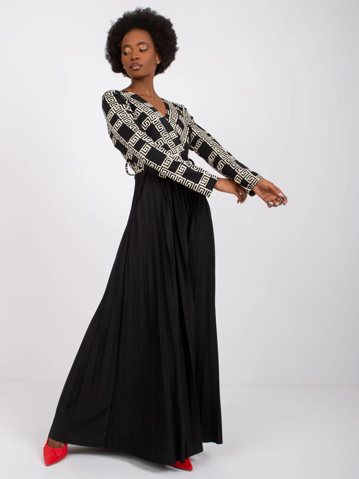 Μαύρο εκρού δίχρωμο μάξι φόρεμα