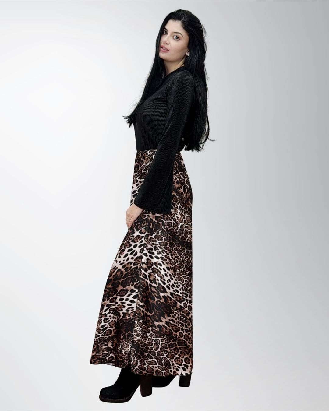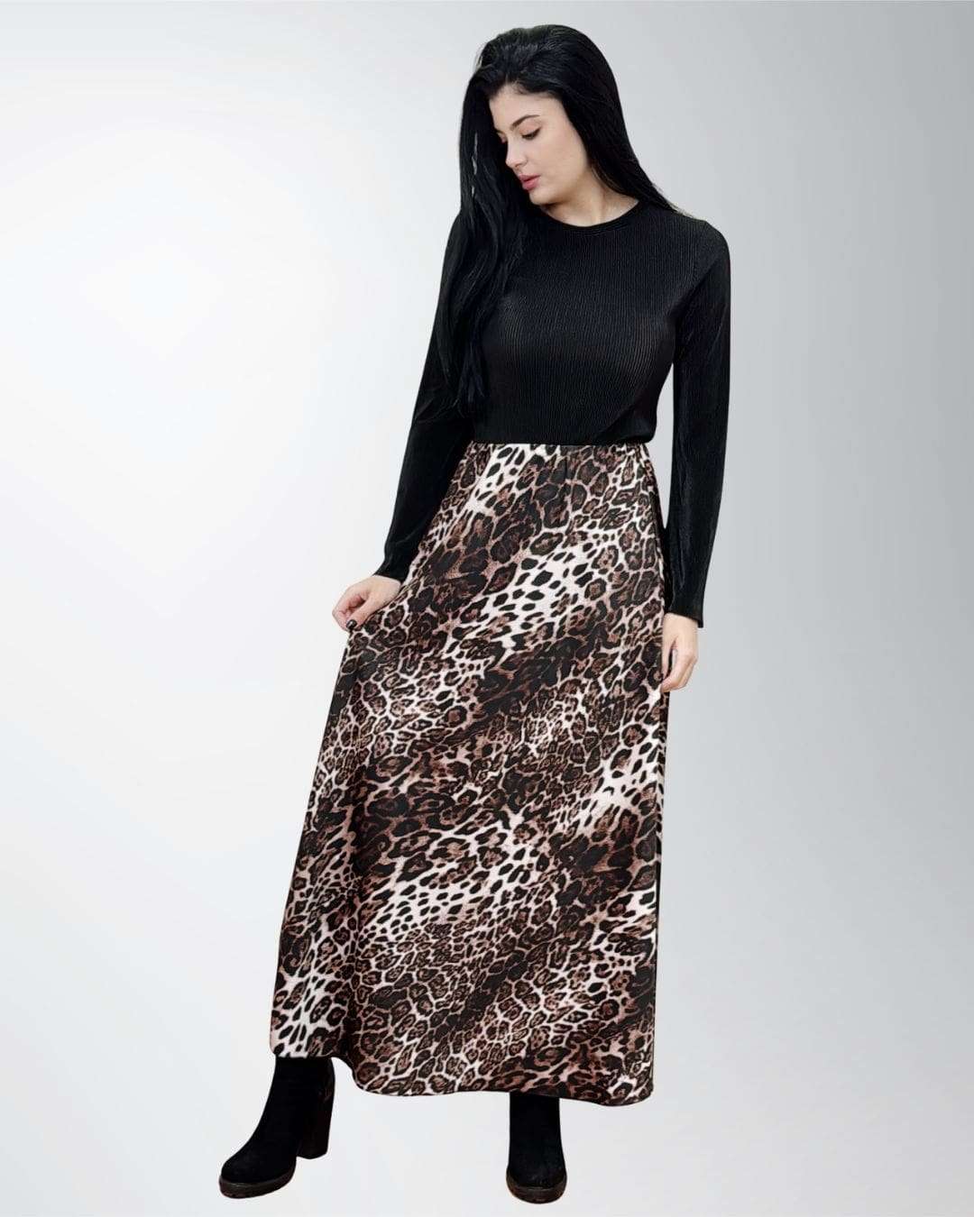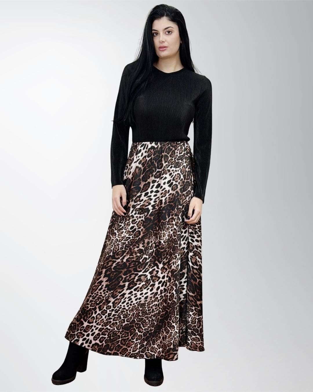 Η σατέν λάμψη που σε ακολουθεί όλη μέρα. Η maxi animal print φούστα δίνει κίνηση, στυλ και άνεση… χωρίς να προσπαθείς καθόλου.