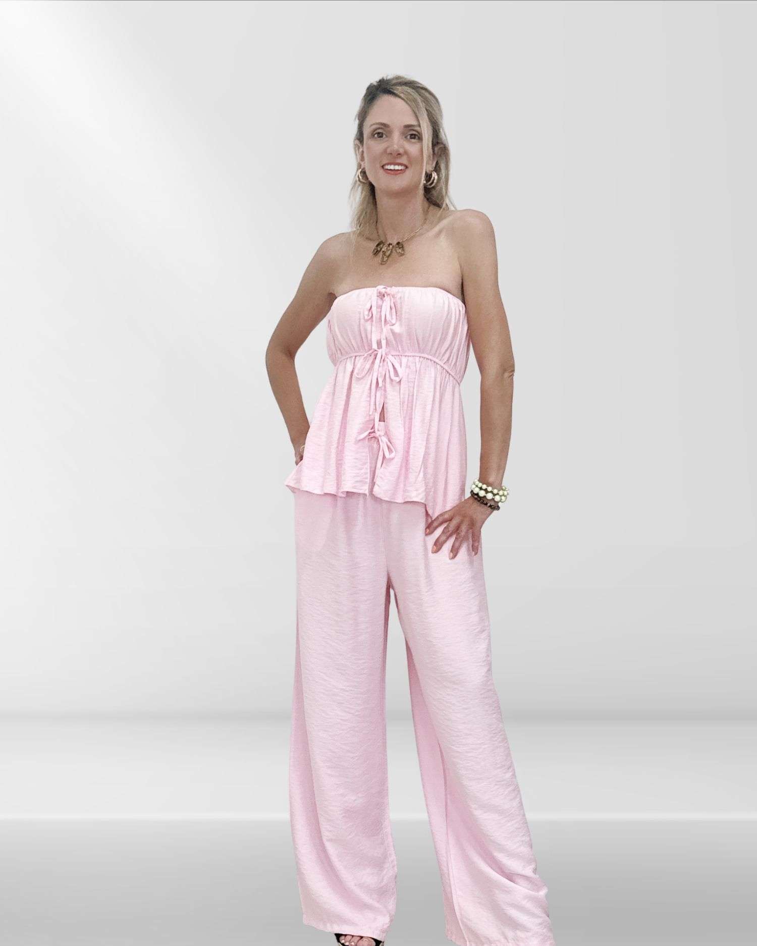 Μονόχρωμο Σετ Παντελόνα-strapless τοπ Rose