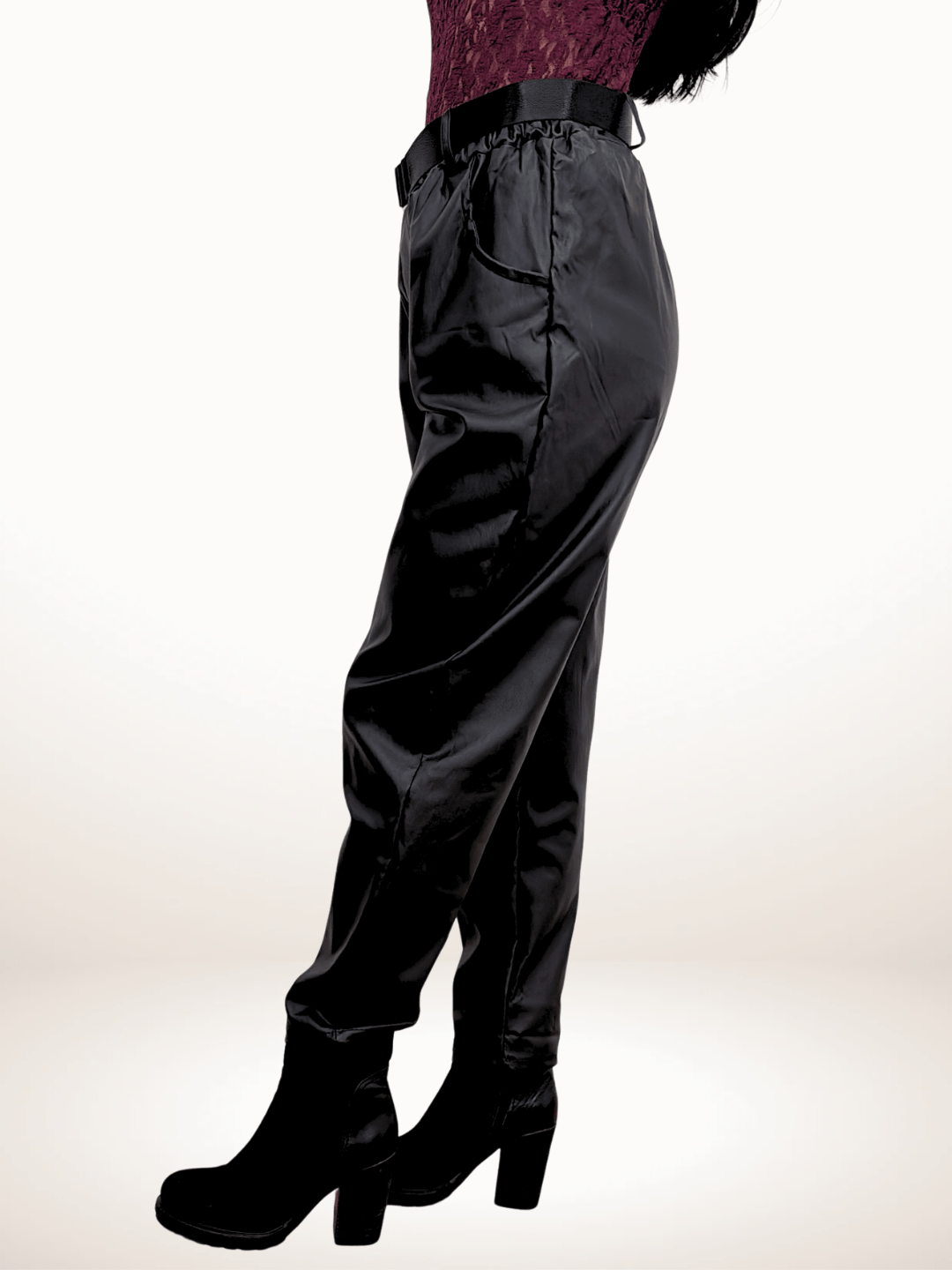 Παντελόνα σε Δερματίνη με ζώνη Μαύρο