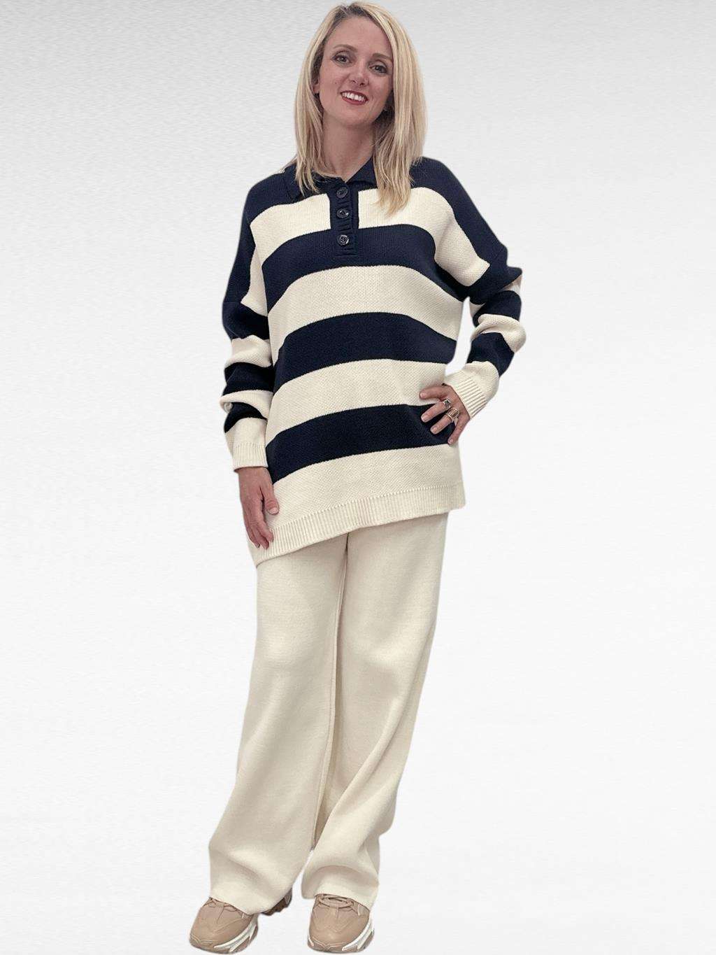 Πλεκτό ριγέ σετ Cream/Navy