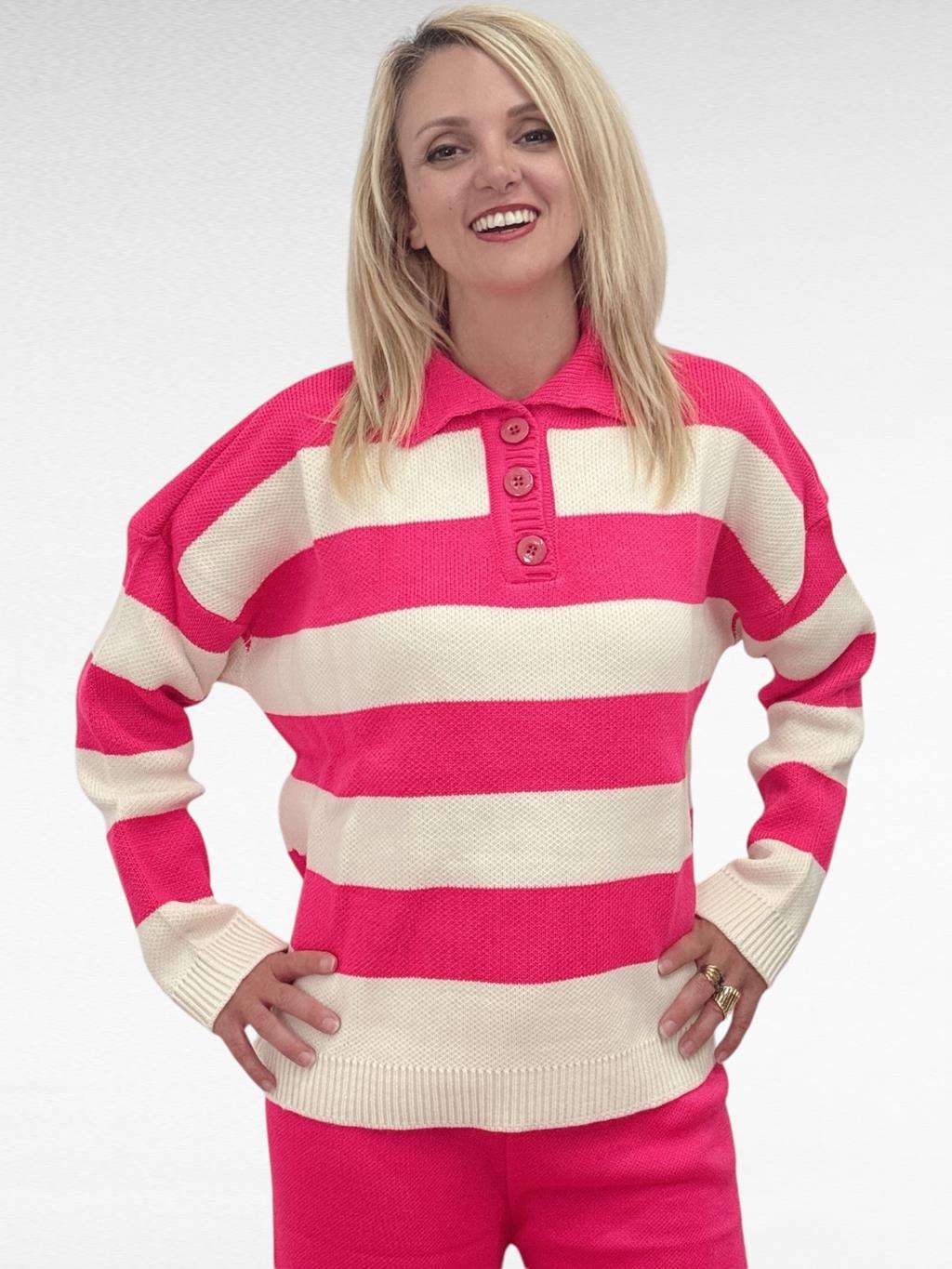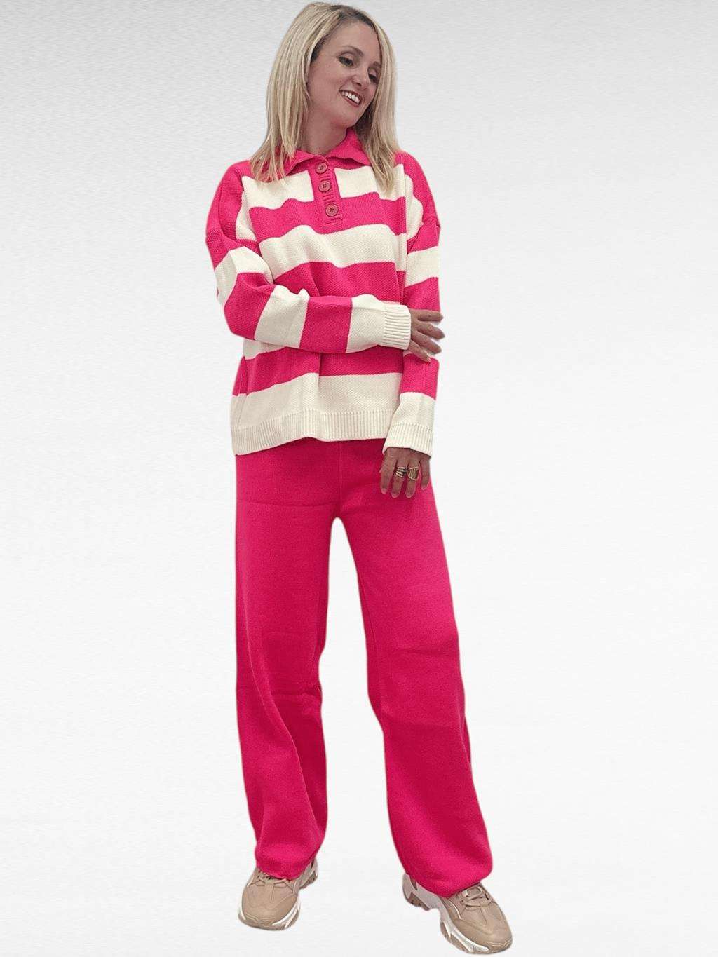 Πλεκτό ριγέ σετ Fuchsia/Cream
