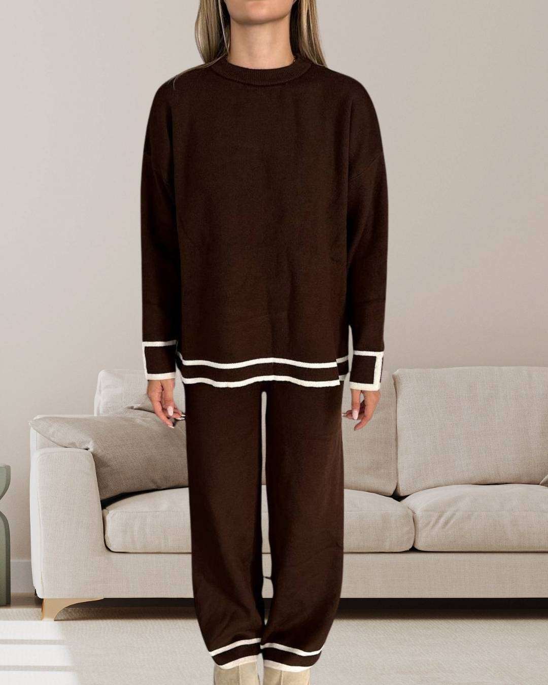 Πλεκτό σετ με διχρωμίες ρίγες Καφέ
