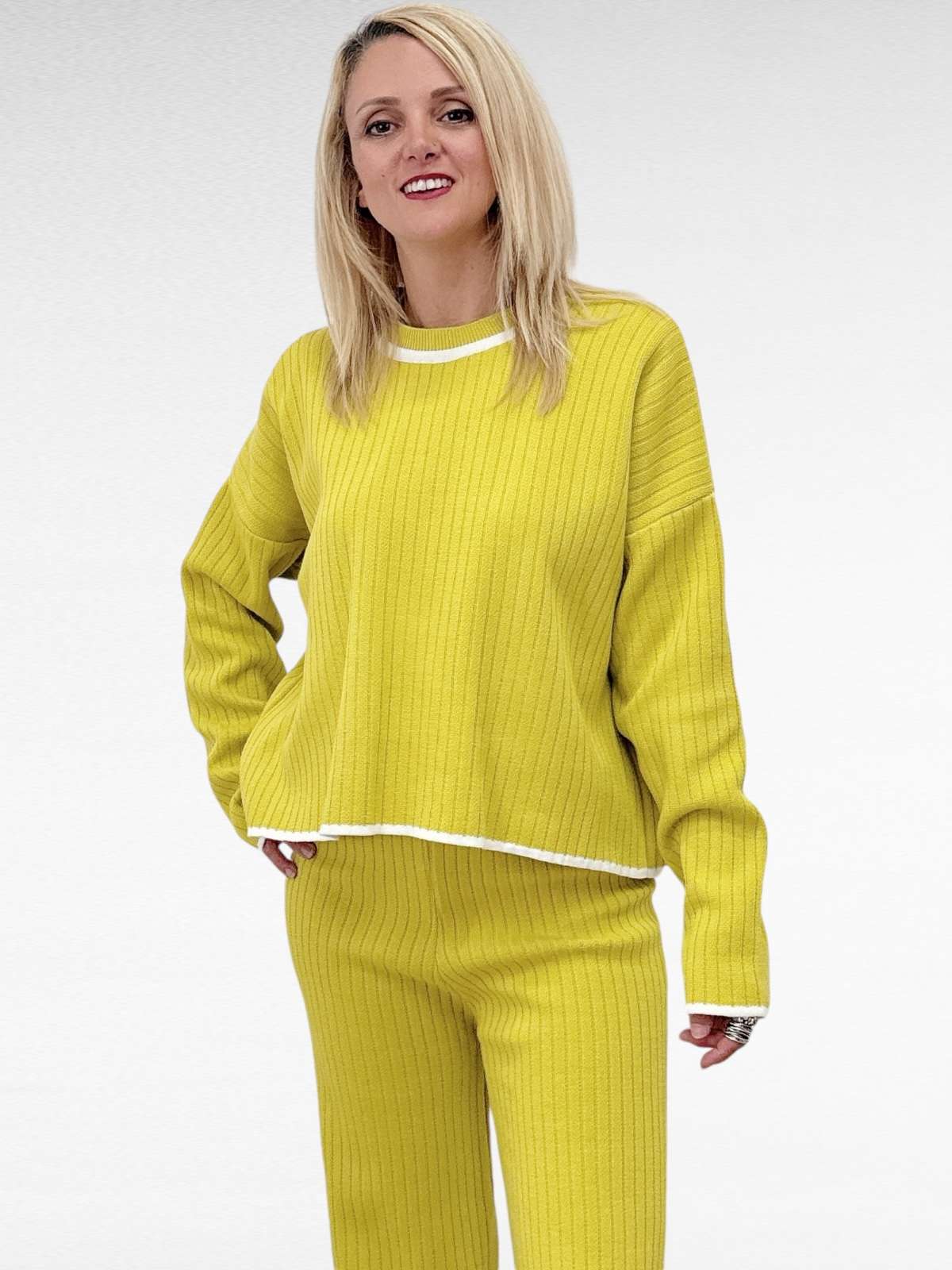 Πλεκτό σετ με λεπτή ρίγα Ανοιχτό Lime