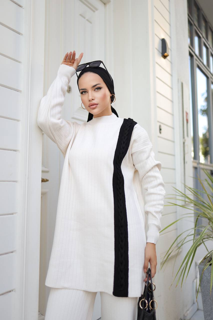 Πλεκτό Σετ με σχέδιο πλεξούδα Εκρού (Cream)