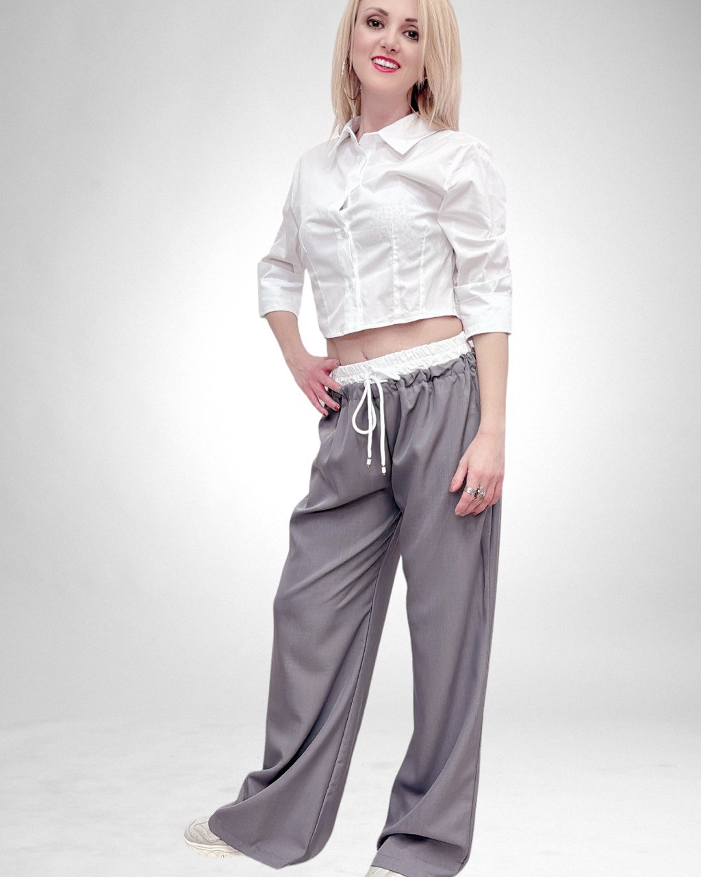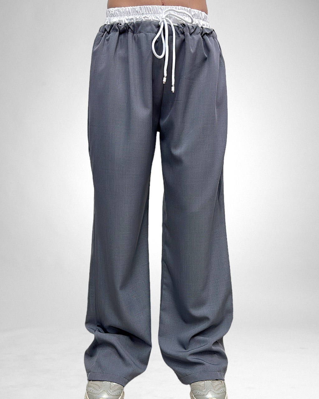 Ψηλόμεσο παντελόνι με λευκή λεπτομέρεια Γκρι (Grey)