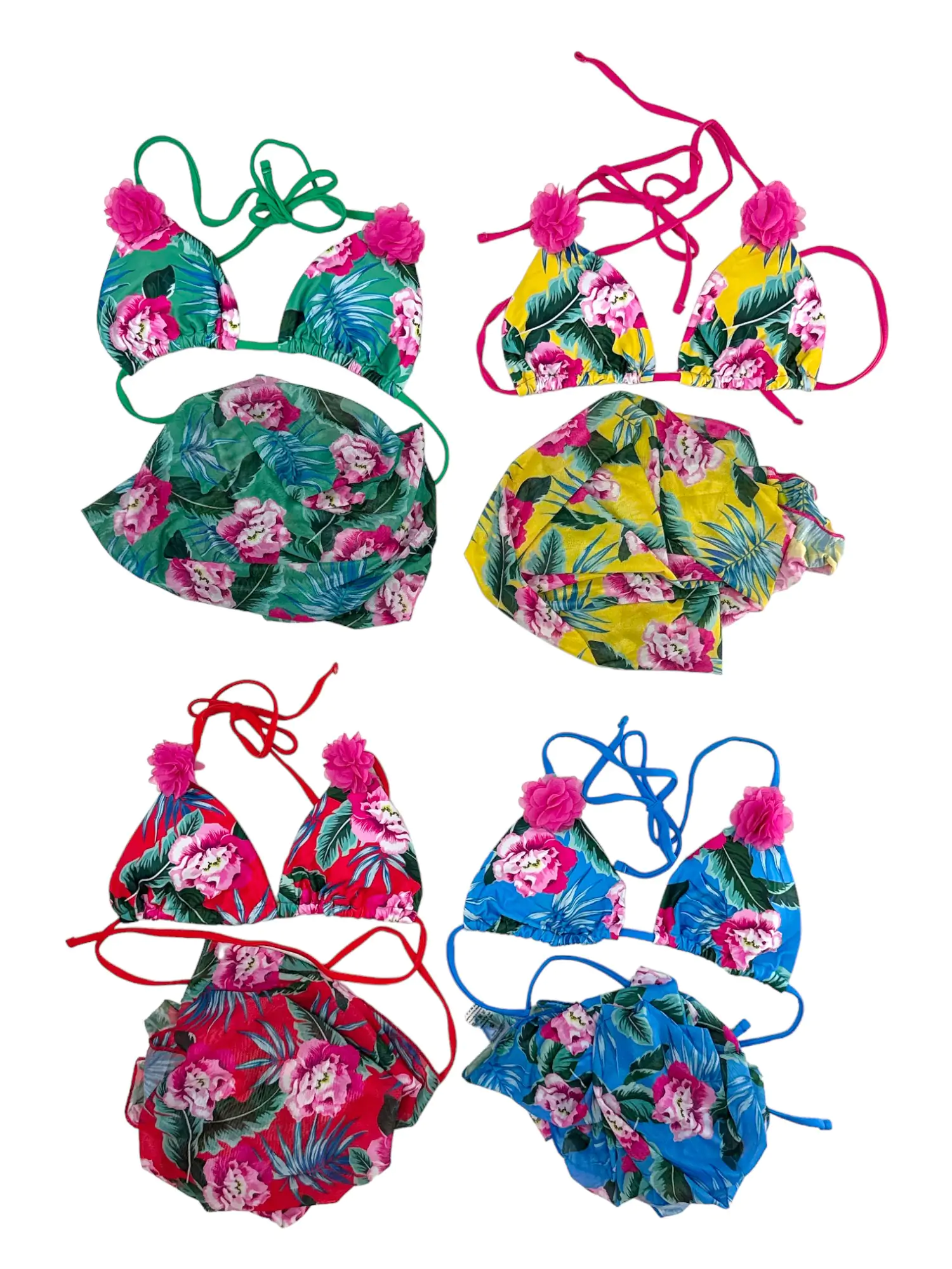 Αναδείξτε το καλοκαιρινό σας στυλ με αυτό το μαγευτικό μαγιό,μπικίνι τριγωνάκι διακοσμημένο με εντυπωσιακά 3D λουλούδια.