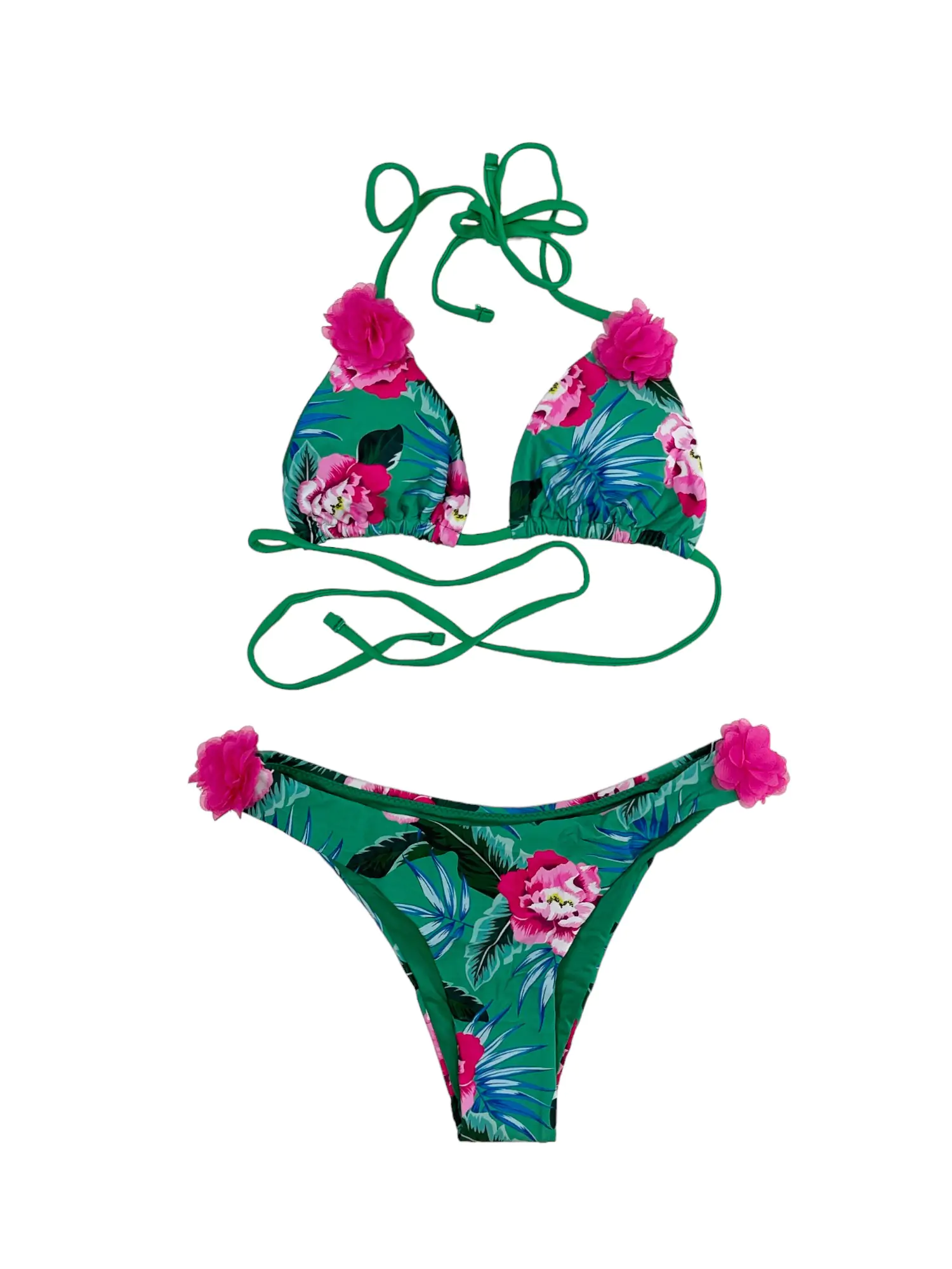 Αναδείξτε το καλοκαιρινό σας στυλ με αυτό το μαγευτικό μαγιό,μπικίνι τριγωνάκι διακοσμημένο με εντυπωσιακά 3D λουλούδια.