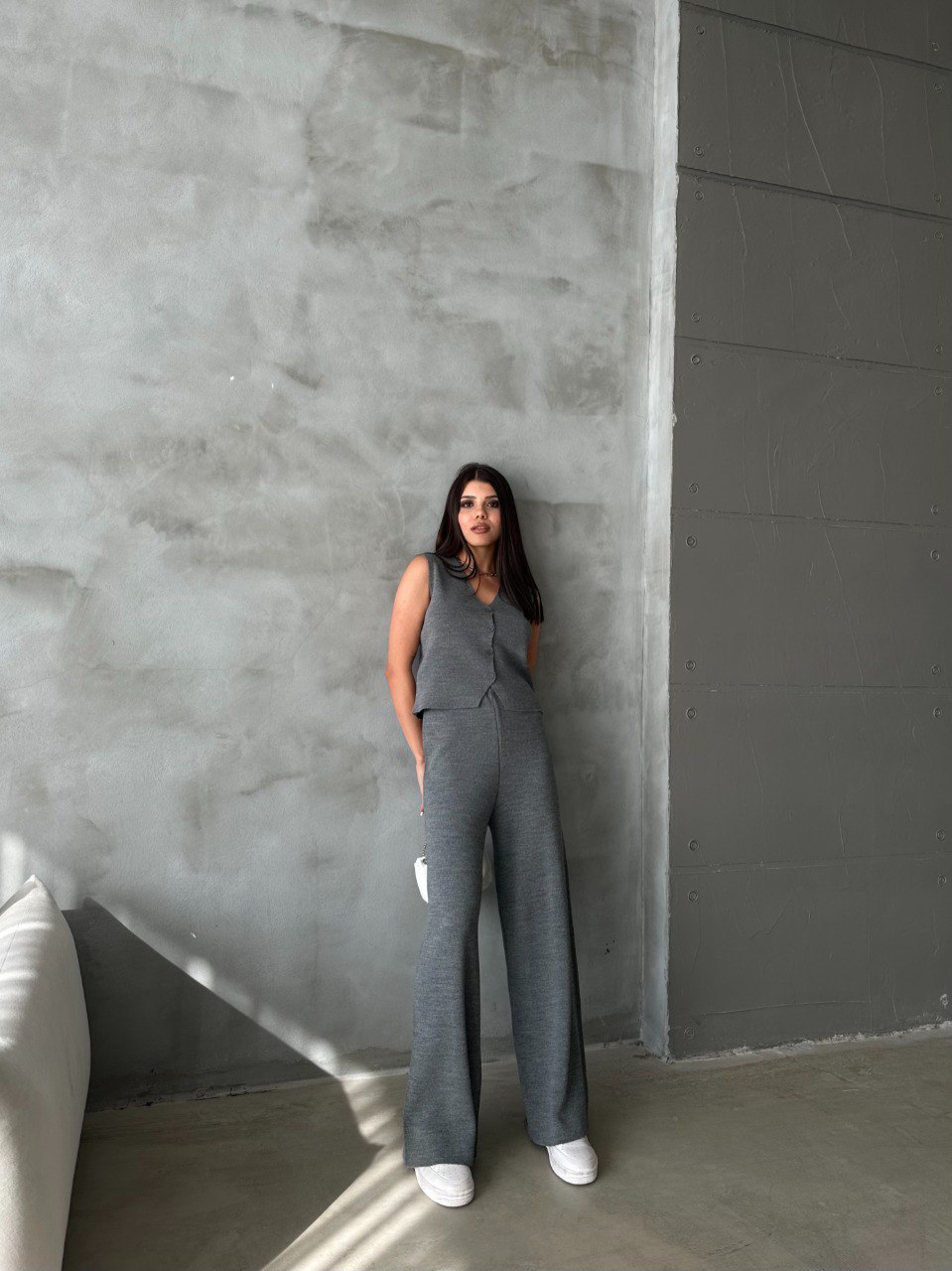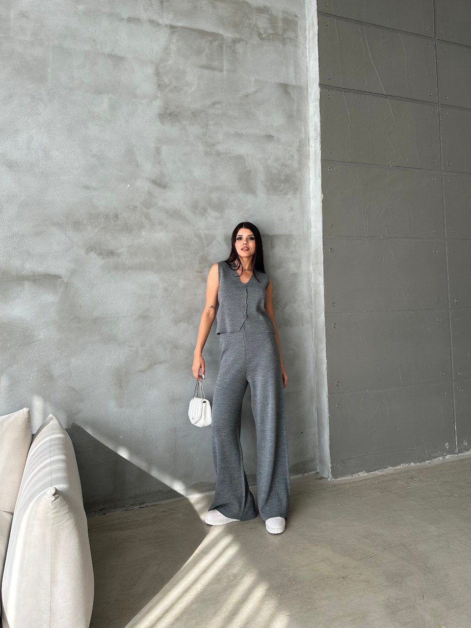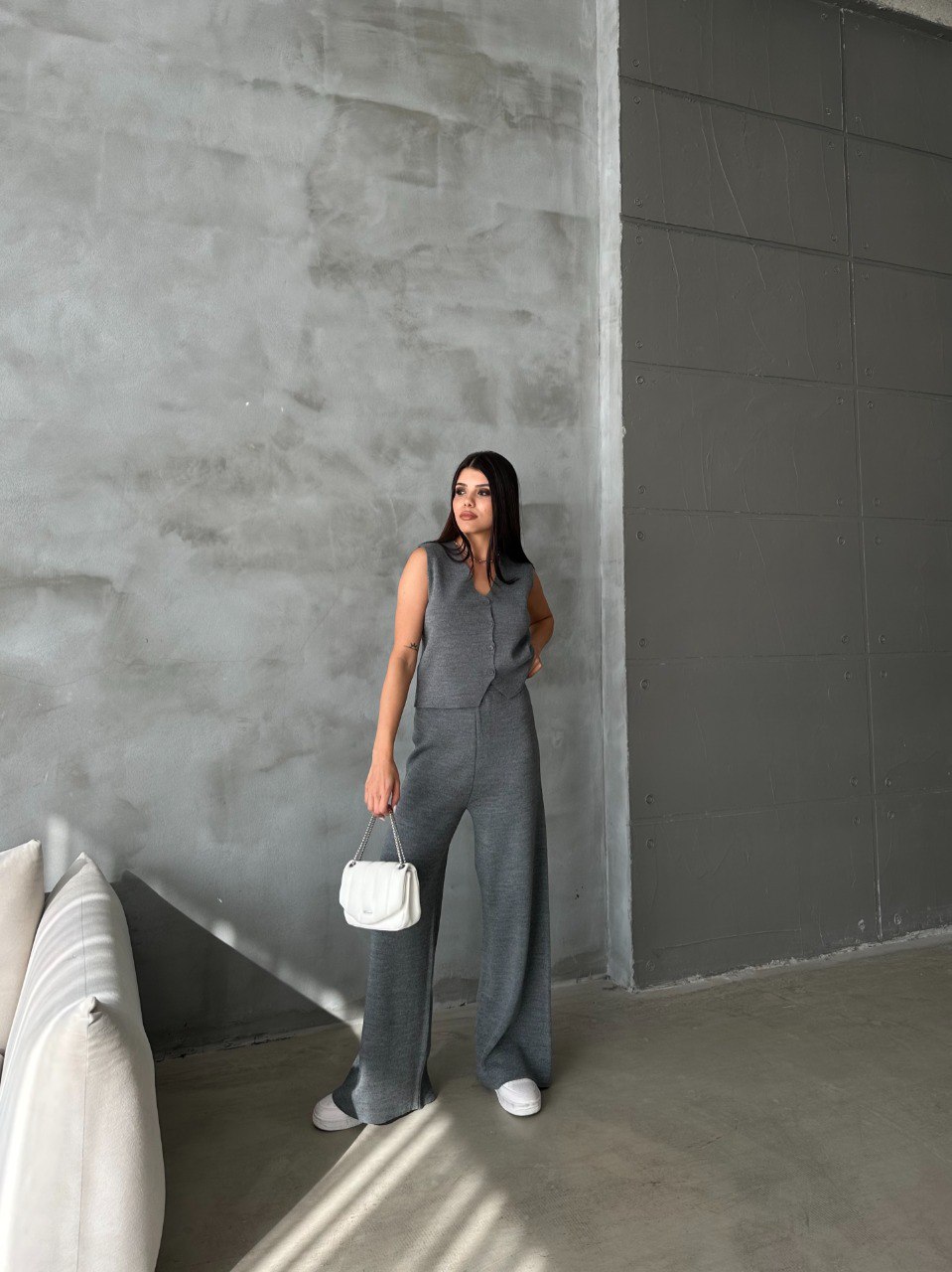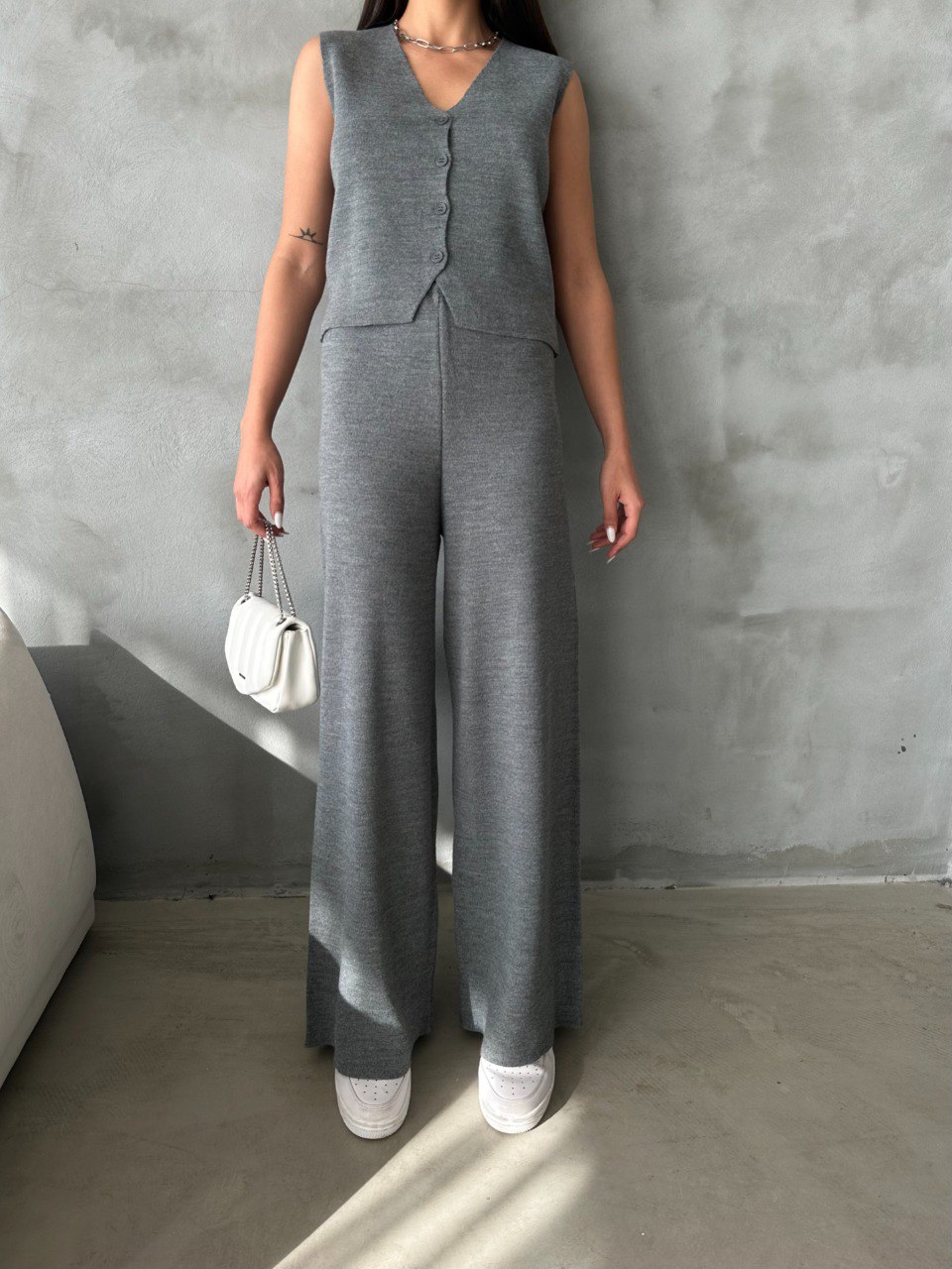 Σετ γιλέκο & παντελόνι πλεκτό Γκρι (Grey)