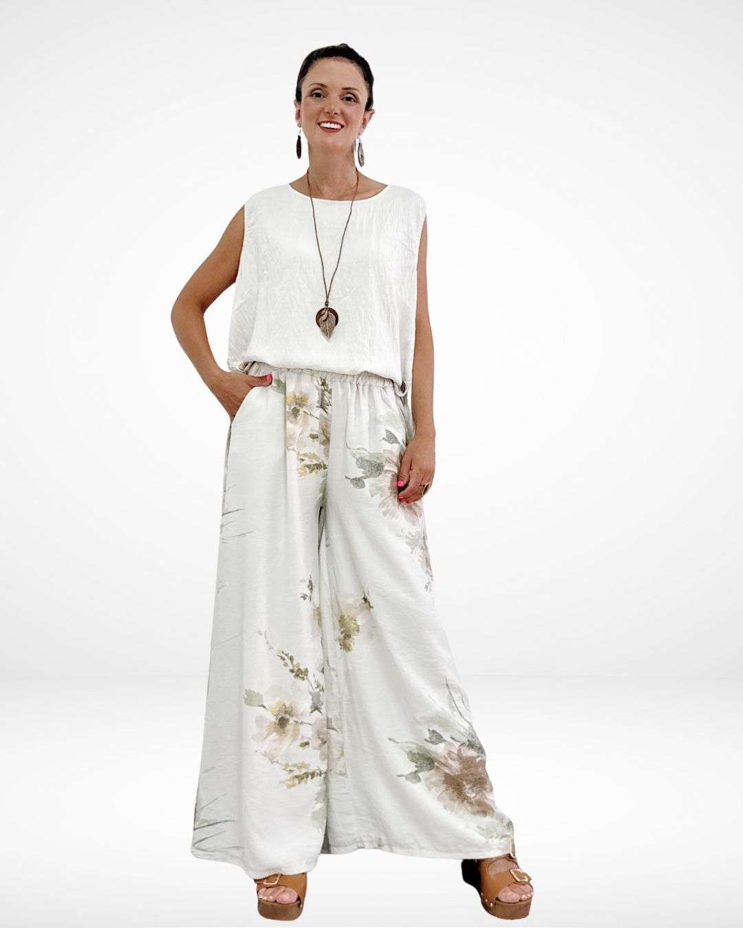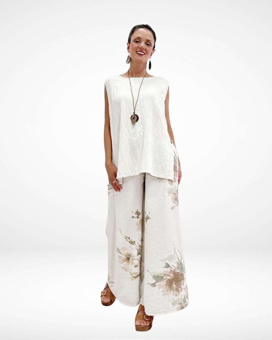 Σετ με Αμάνικο Top & Παντελόνα Μπεζ