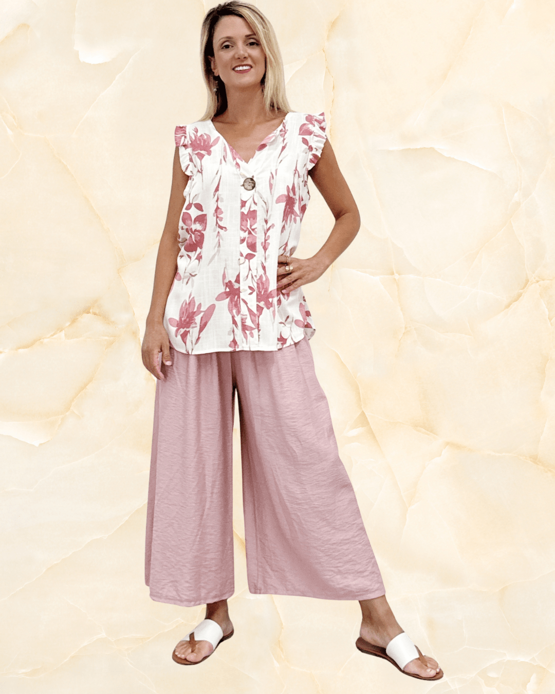 Σετ Παντελόνα ζωνάκι και τοπ φραμπαλά D.Pink– One Size