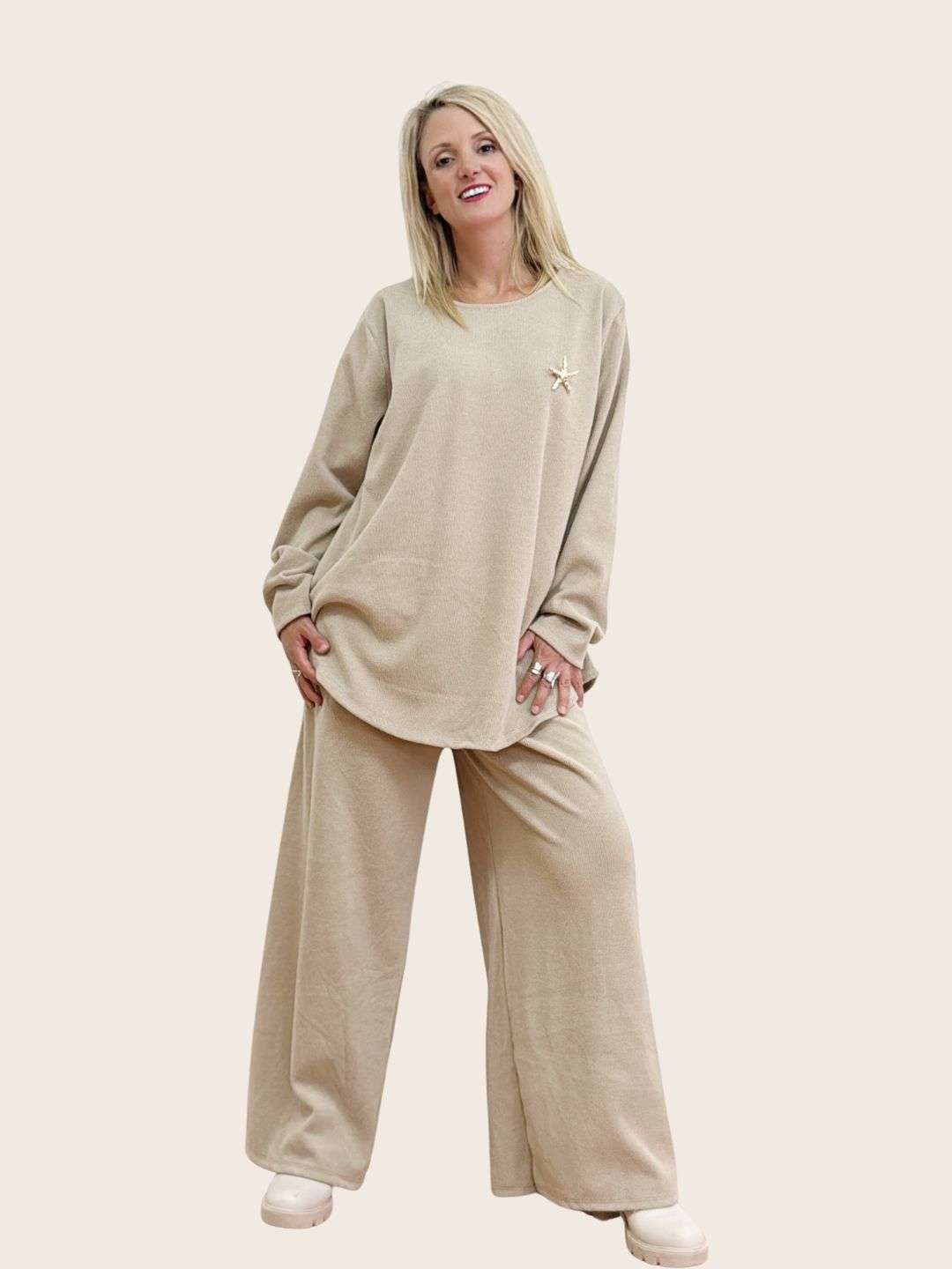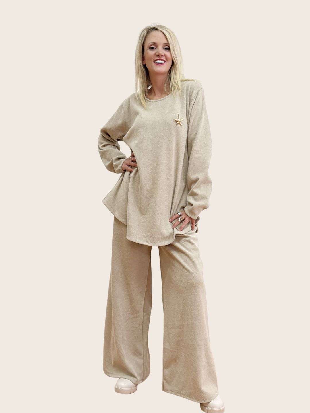 Το Μπεζ σετ παντελόνι & μπλούζα ήρθε για να γίνει το αγαπημένο σου look – stylish, ευκολοφόρετο και τόσο comfy!