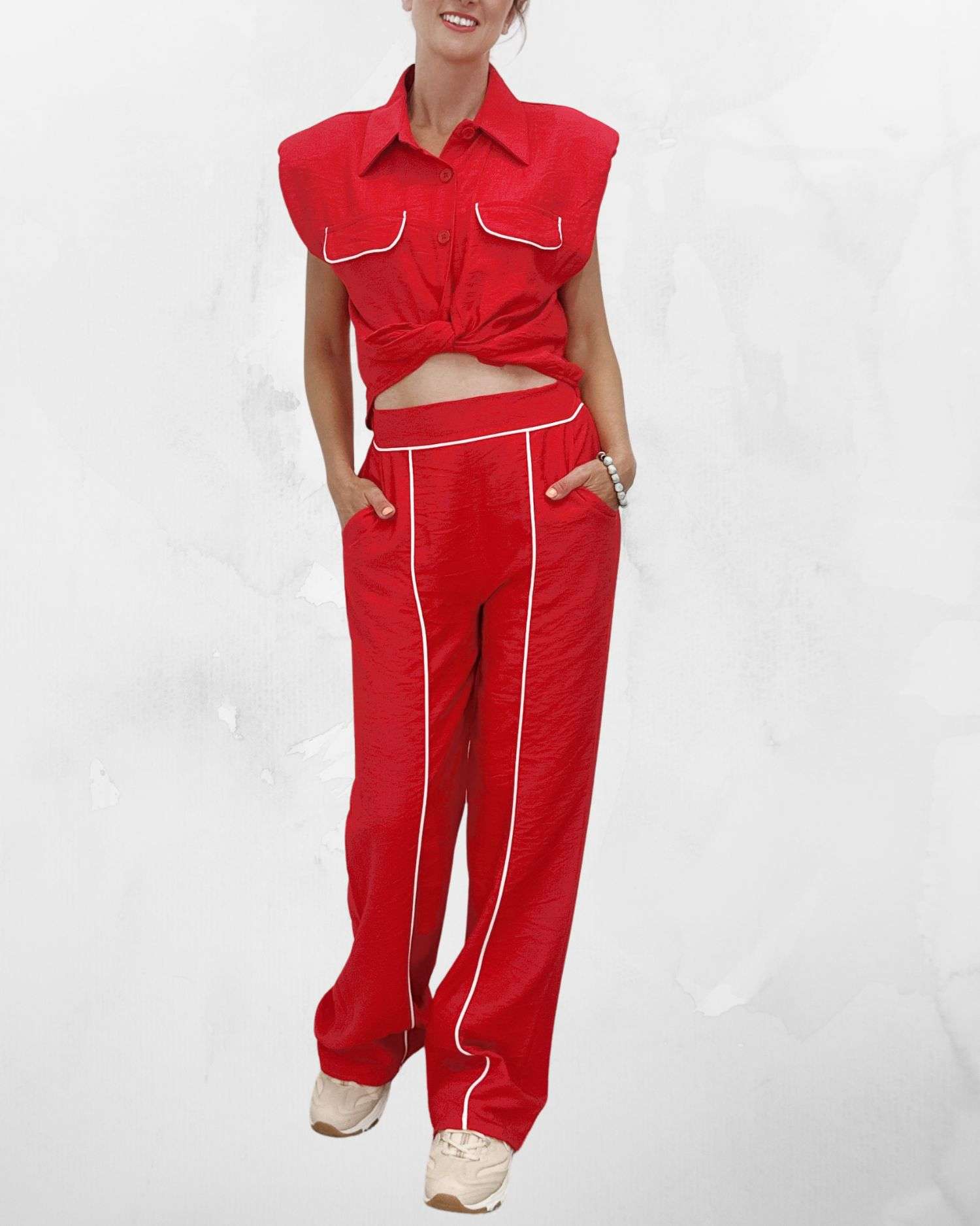 Σετ 2 τεμαχίων: παντελόνι & κροπ πουκάμισο