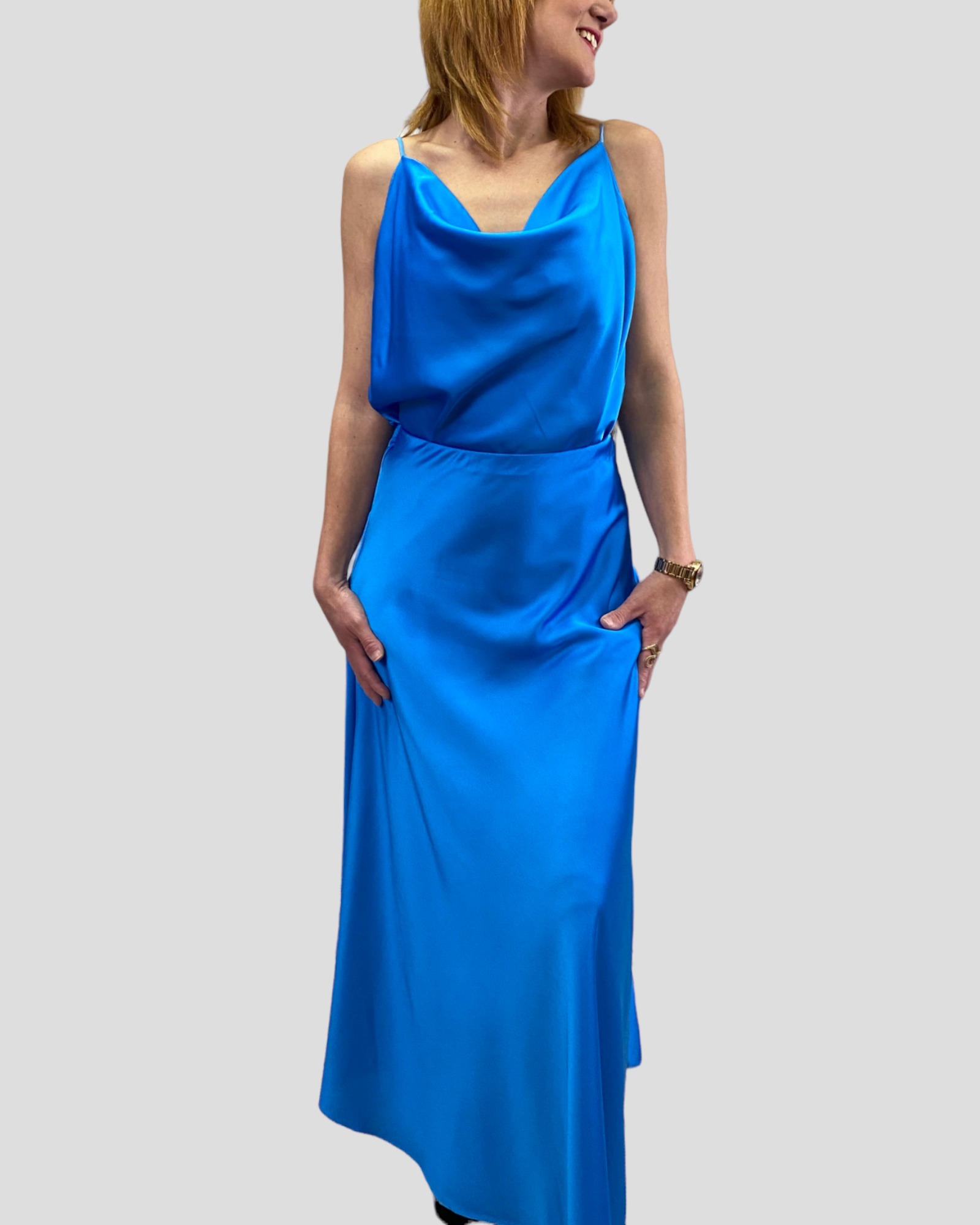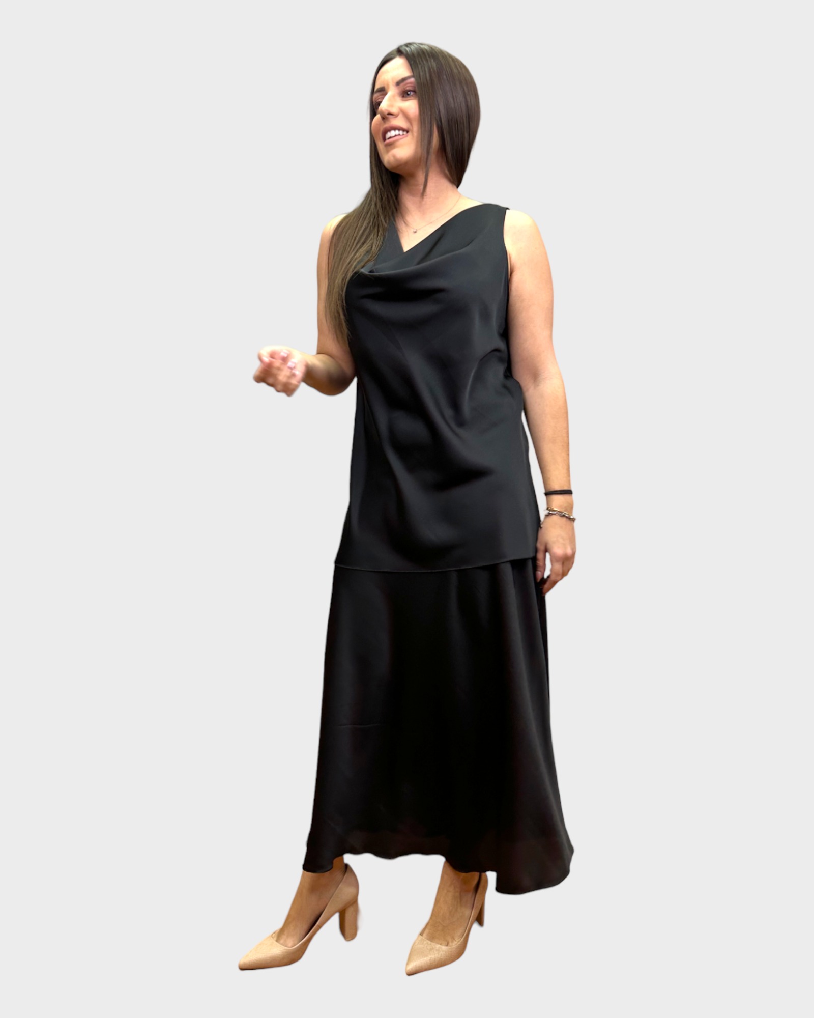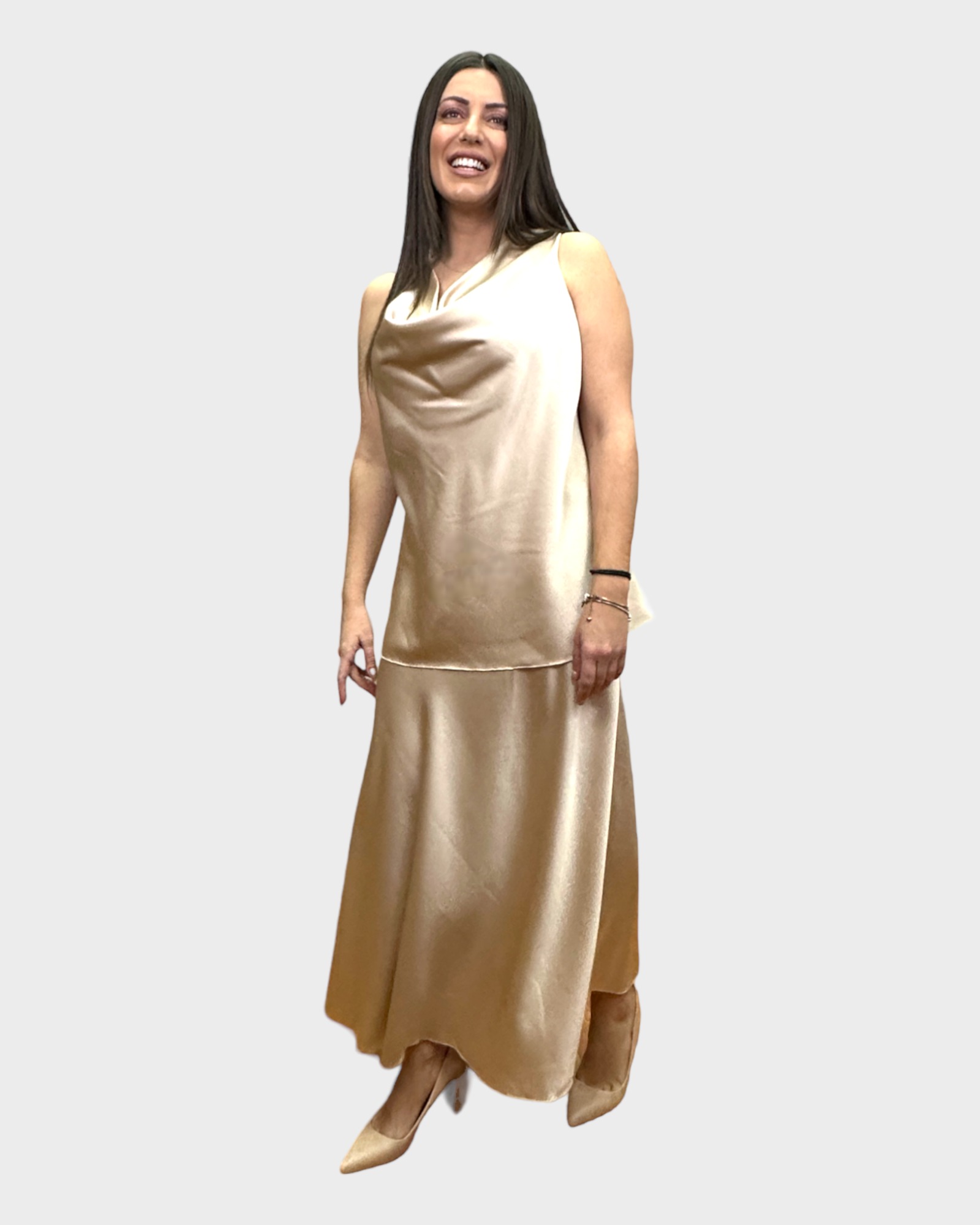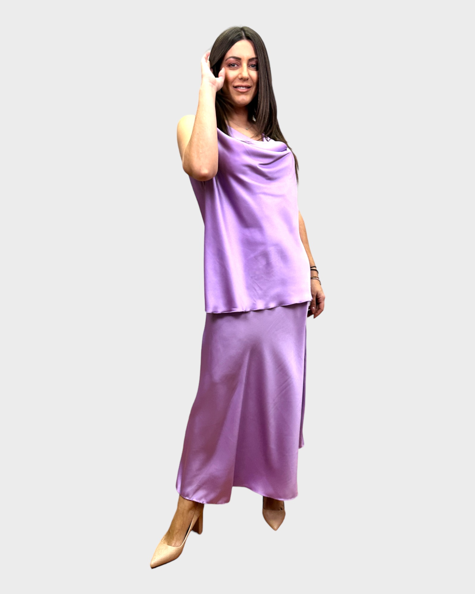Satine μάξι φούστα & τοπ με απαλή λάμψη.