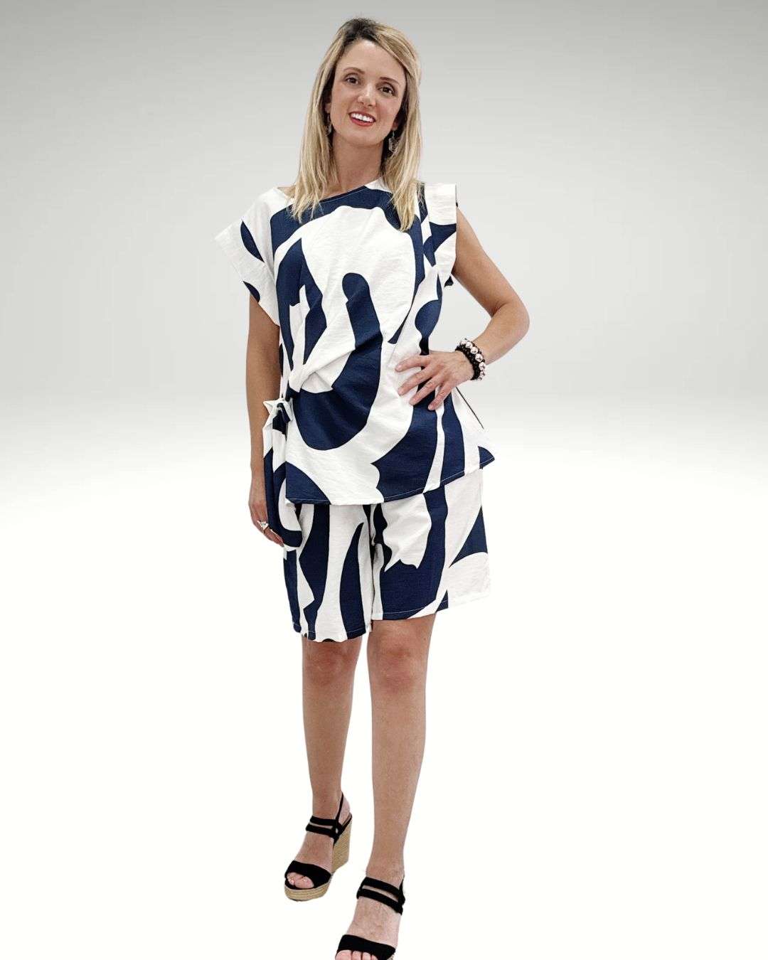 Σετ Βερμούδα & Μπλούζα με Αφηρημένο Τύπωμα Marine – One Size
