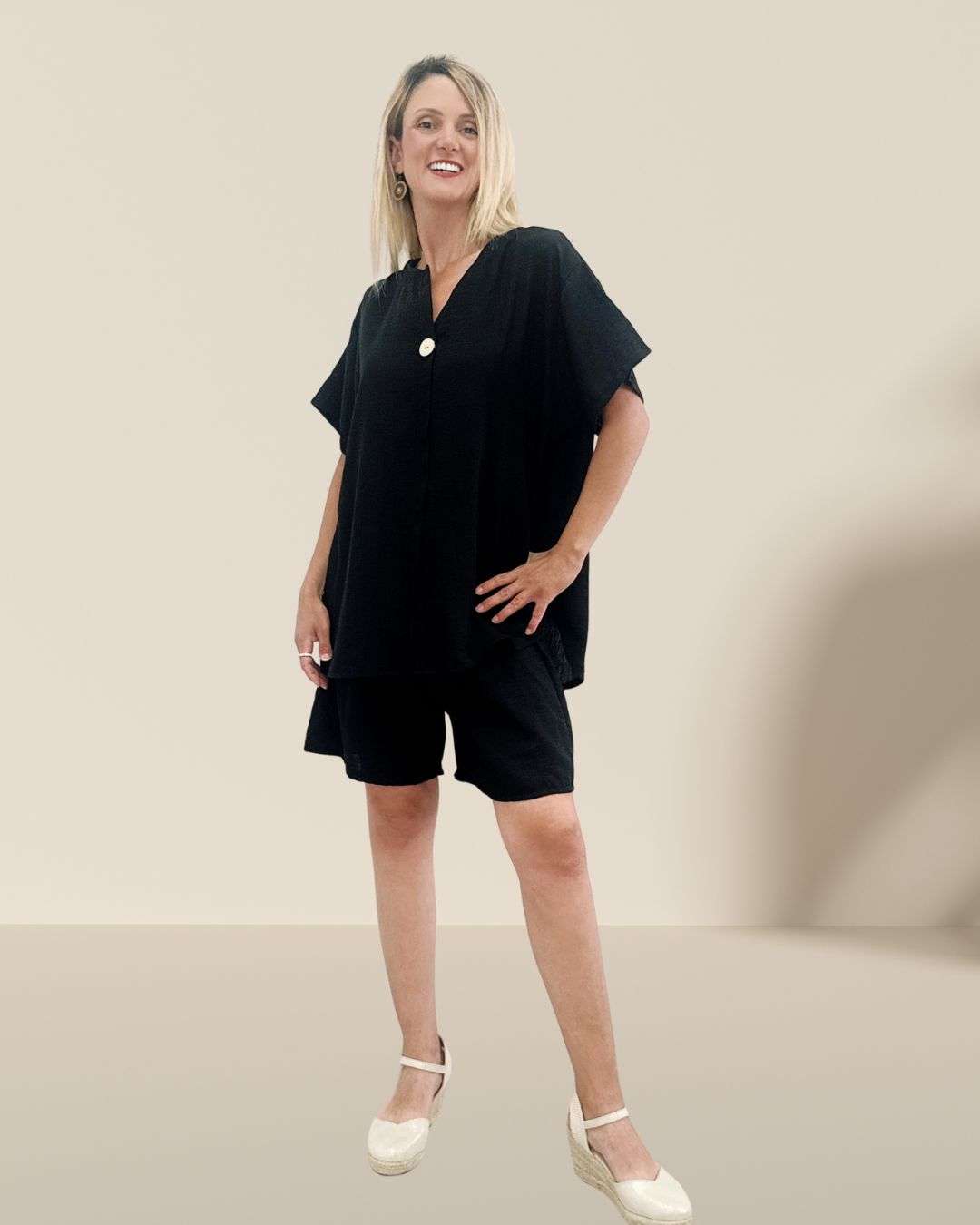 Σετ Βερμούδα & Μπλούζα μονόχρωμο Μαύρο – One Size