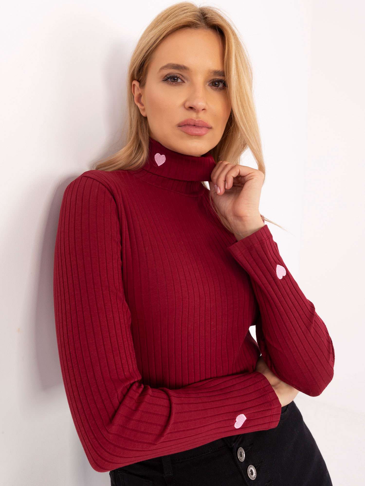 Βαμβακερή Μπλούζα με κέντημα καρδούλες Μπορντό ♥style RUE 250118