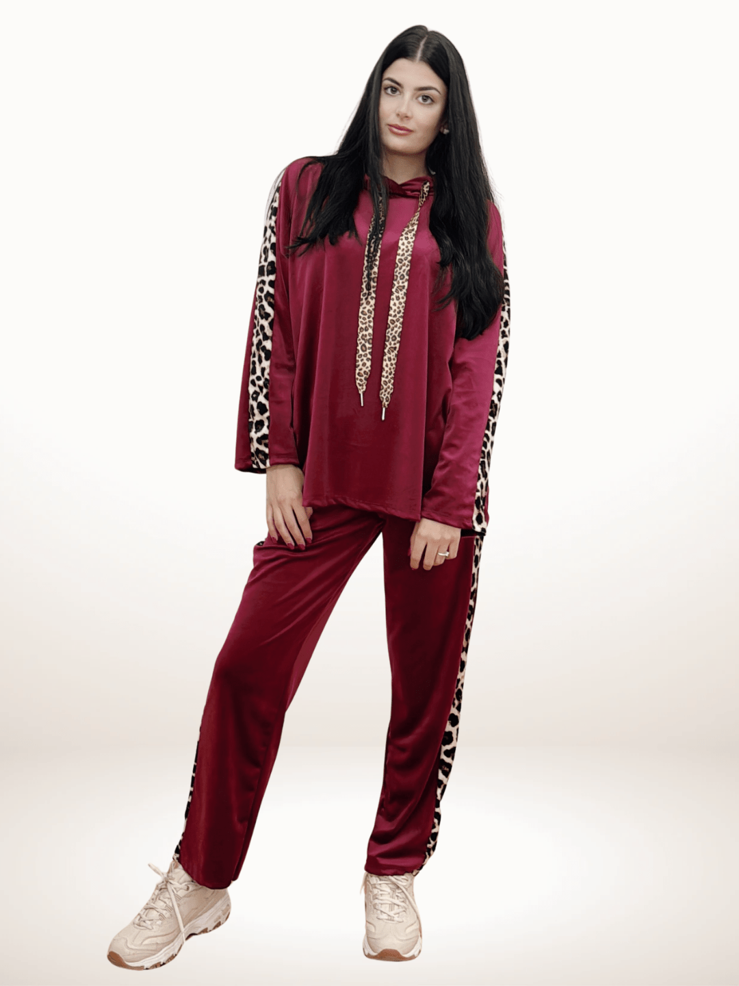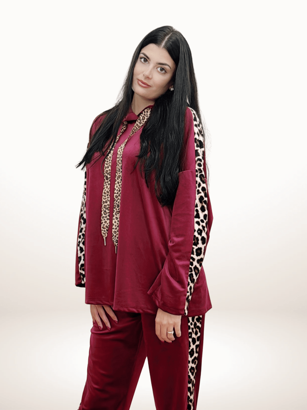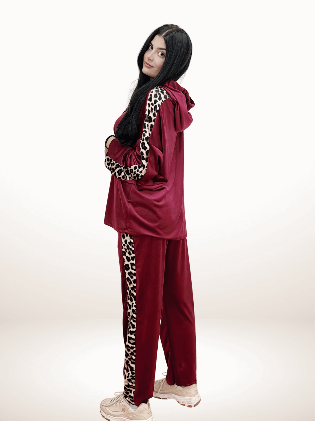 Βελούδινο Σετ με Κουκούλα και Πλαϊνά Σιρίτια Animal Print Μπορντό