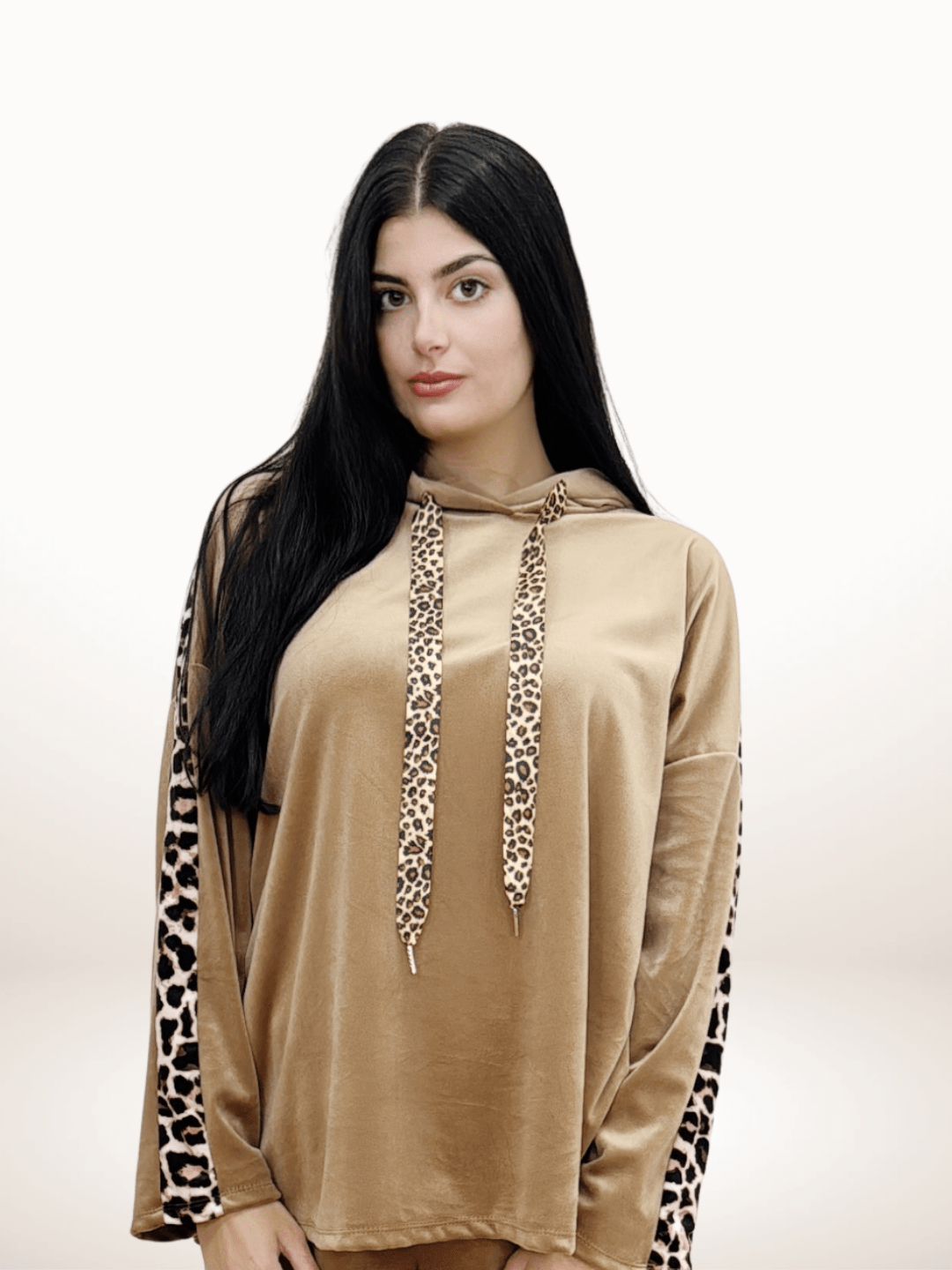 Βελούδινο Σετ με Κουκούλα και Πλαϊνά Σιρίτια Animal Print Ταμπά