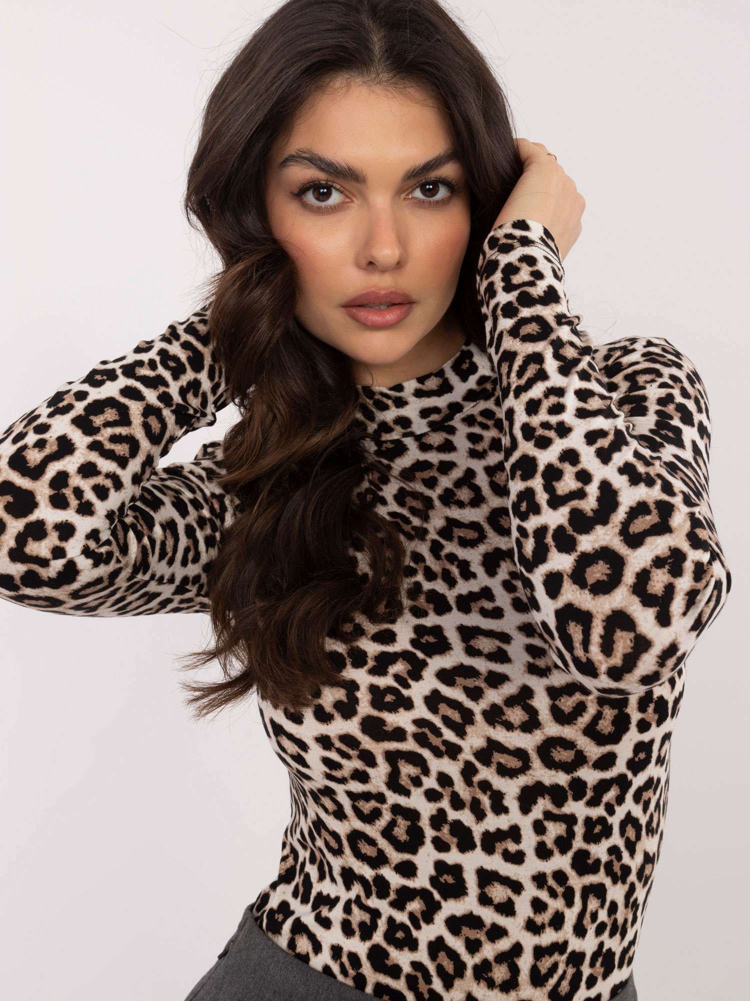 Αναδείξτε το στυλ σας με αυτήν την κομψή animal print μπλούζα, κατασκευασμένη από απαλό ύφασμα βισκόζης.